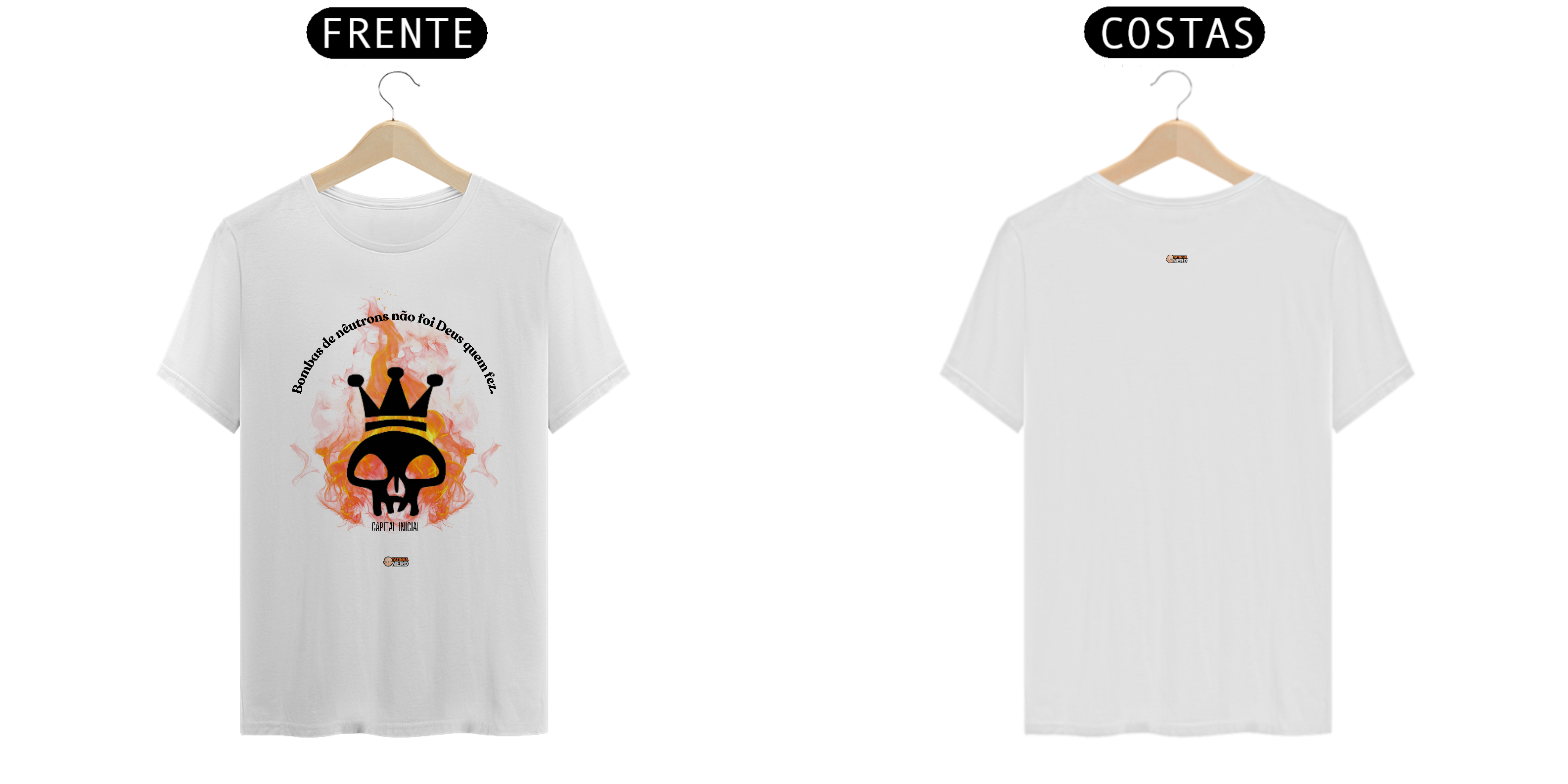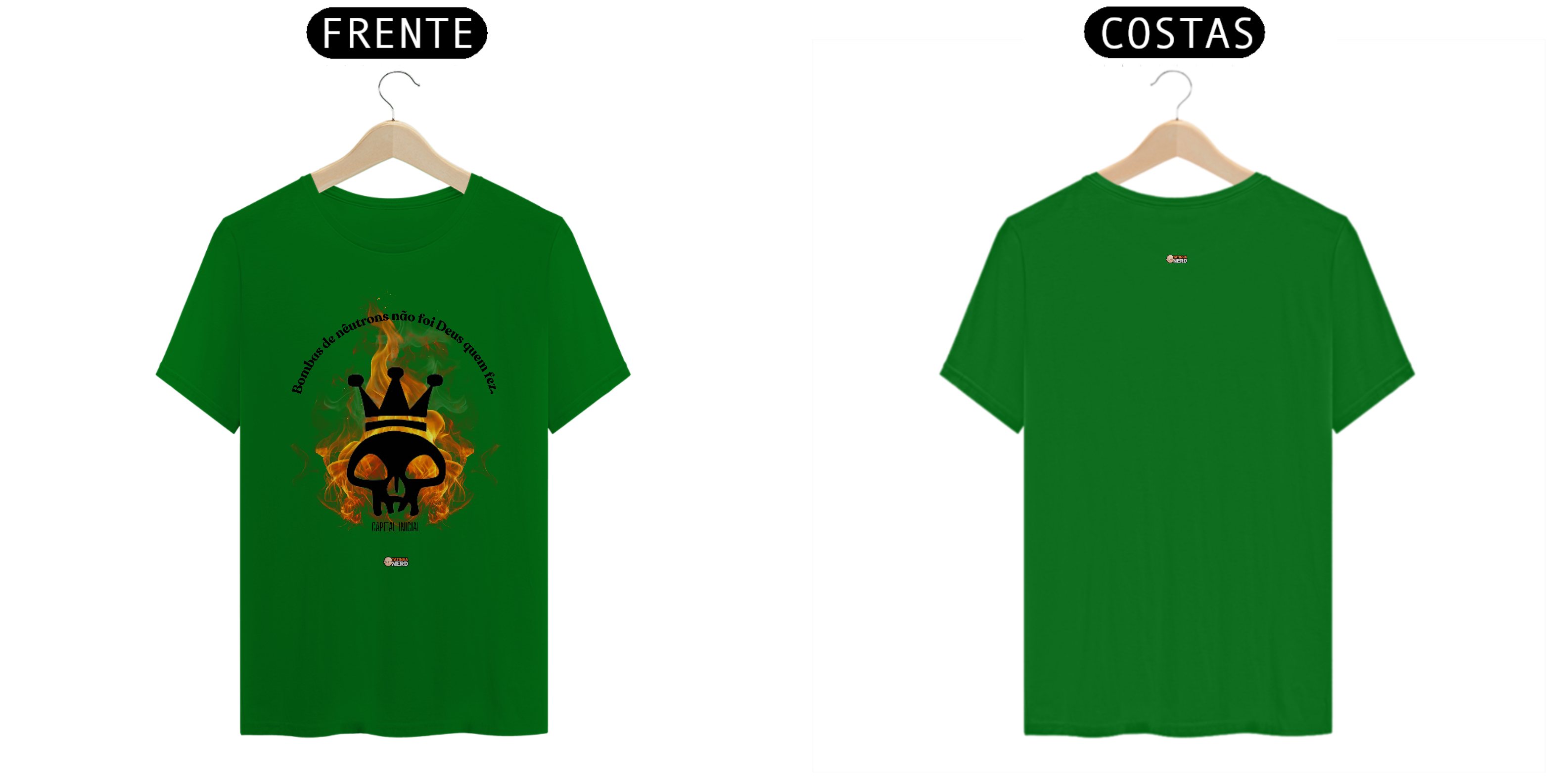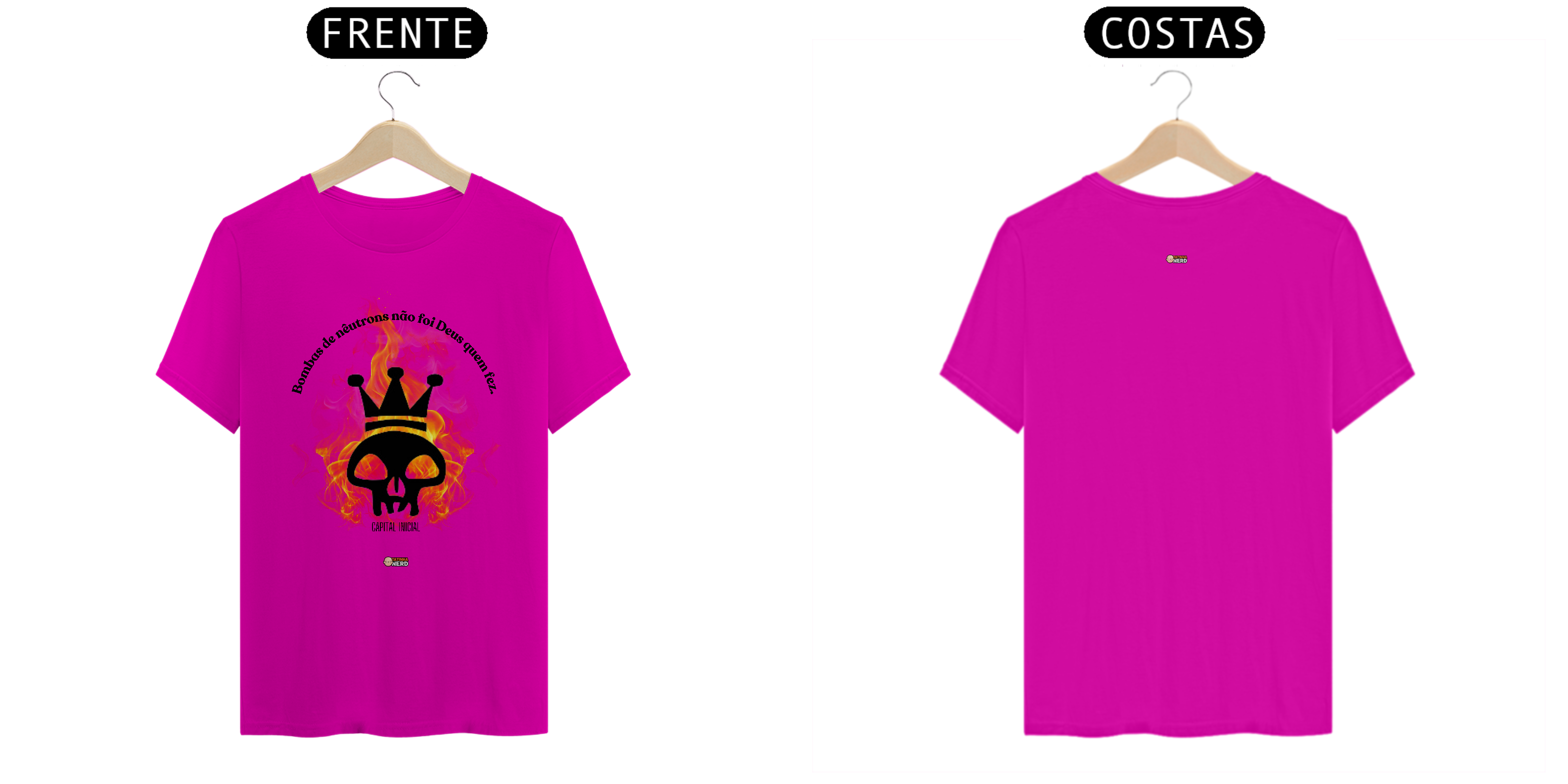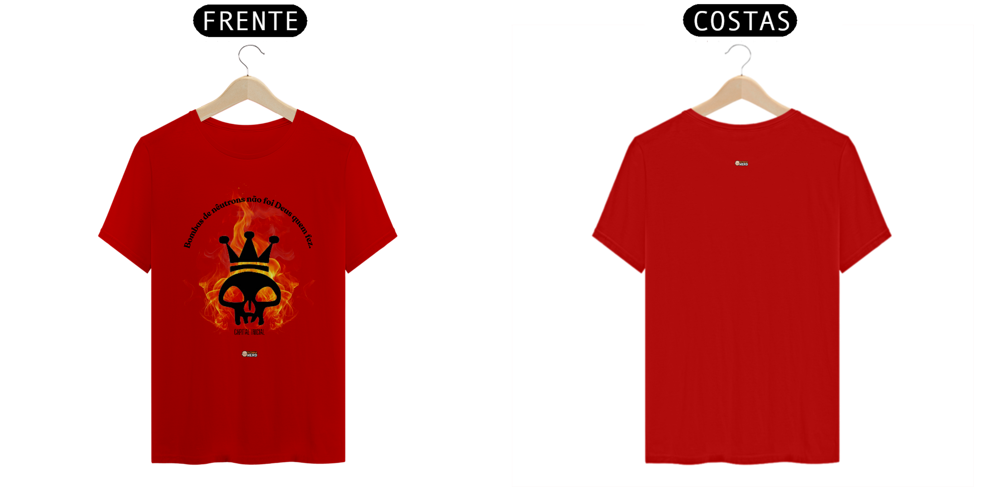 A camiseta "Bombas de Nêutrons", inspirada no icônico hit da banda Capital Inicial, é uma peça perfeita para quem deseja expressar sua paixão pelo rock nacional com atitude e estilo. Com uma estampa marcante, que combina uma caveira com coroa e um fundo de chamas vibrantes, esta camiseta representa a energia e a irreverência que definem o espírito do rock brasileiro.