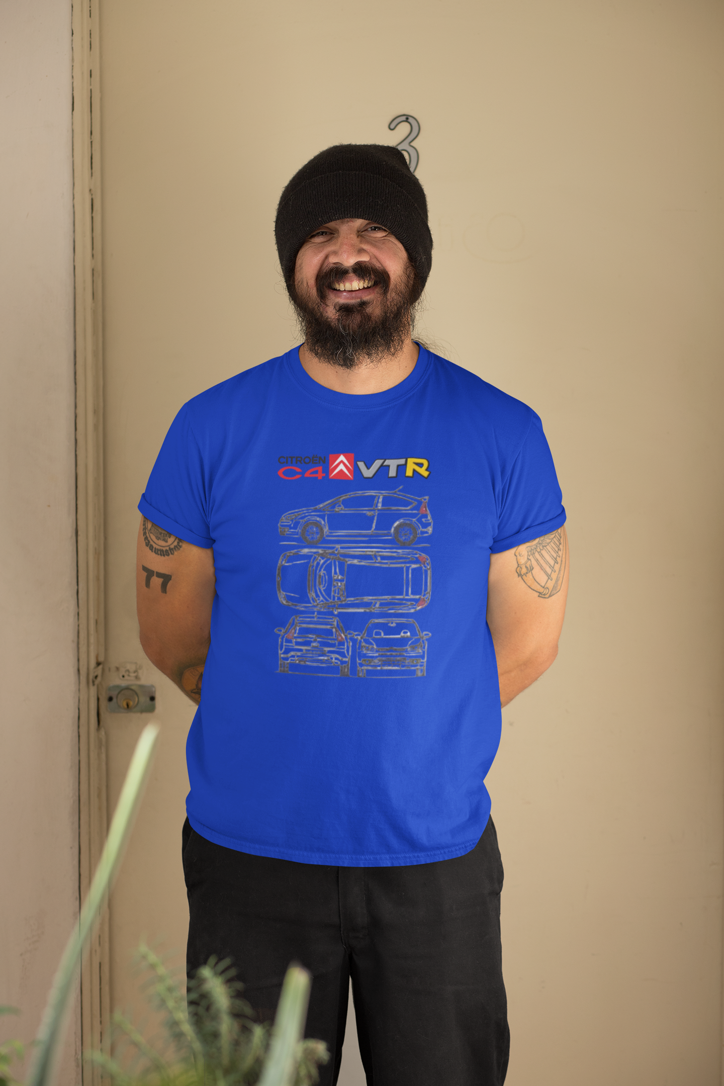 Se você é fã do icônico Citroën C4 VTR, esta camiseta é perfeita para você! Com um design técnico detalhado, apresentando diferentes ângulos do carro – lateral, superior, traseiro e frontal – esta estampa homenageia um dos modelos mais marcantes da montadora francesa.