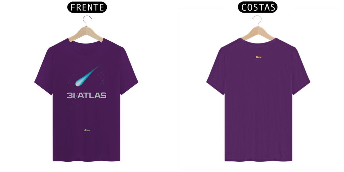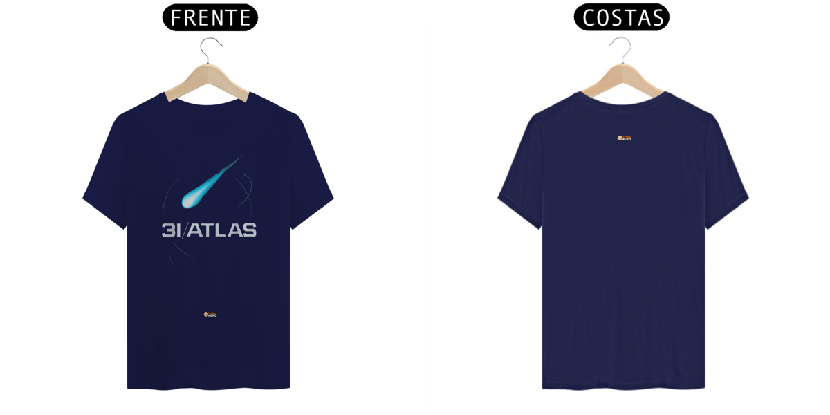 Garanta já a sua Camiseta astronomia 3i/ATLAS (cometa azul) — e leve um pedaço do cosmos para o seu guarda-roupa.