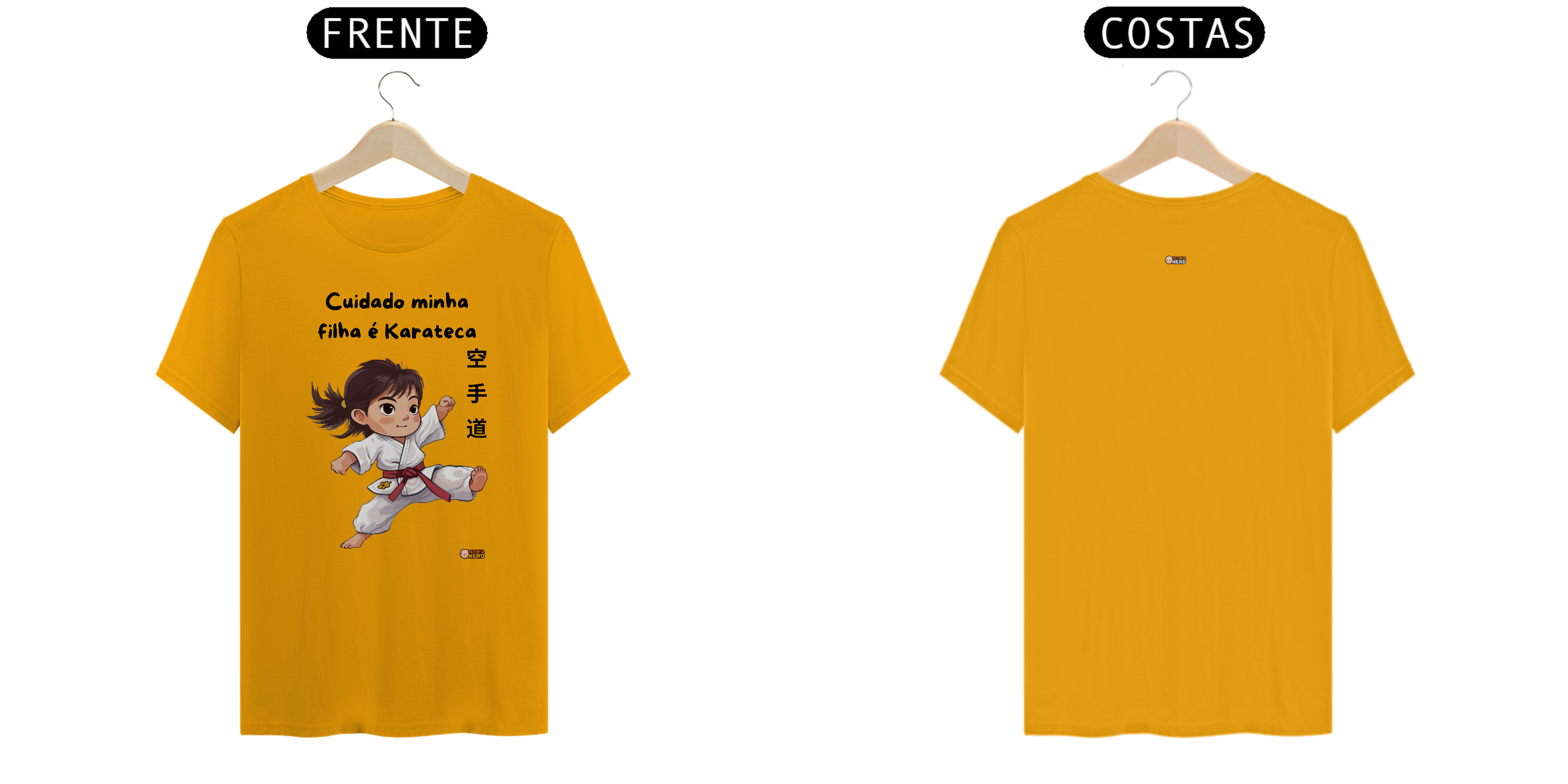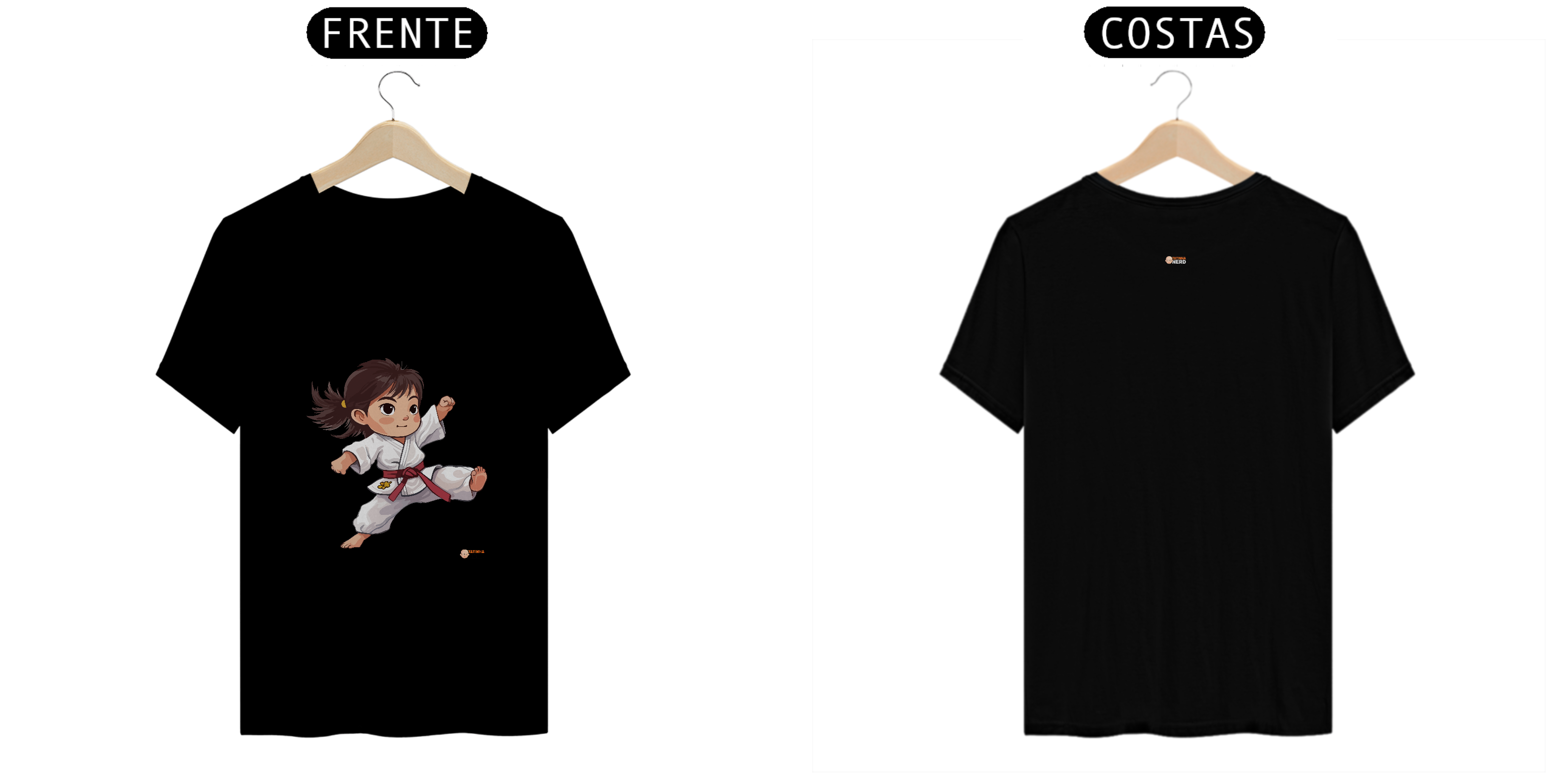 Produzida com materiais de alta qualidade, a camiseta oferece conforto e durabilidade, sendo uma ótima opção para quem busca estilo aliado à paixão pelas artes marciais. Vista-se com orgulho e mostre que sua pequena karateca está sempre pronta para o próximo desafio!