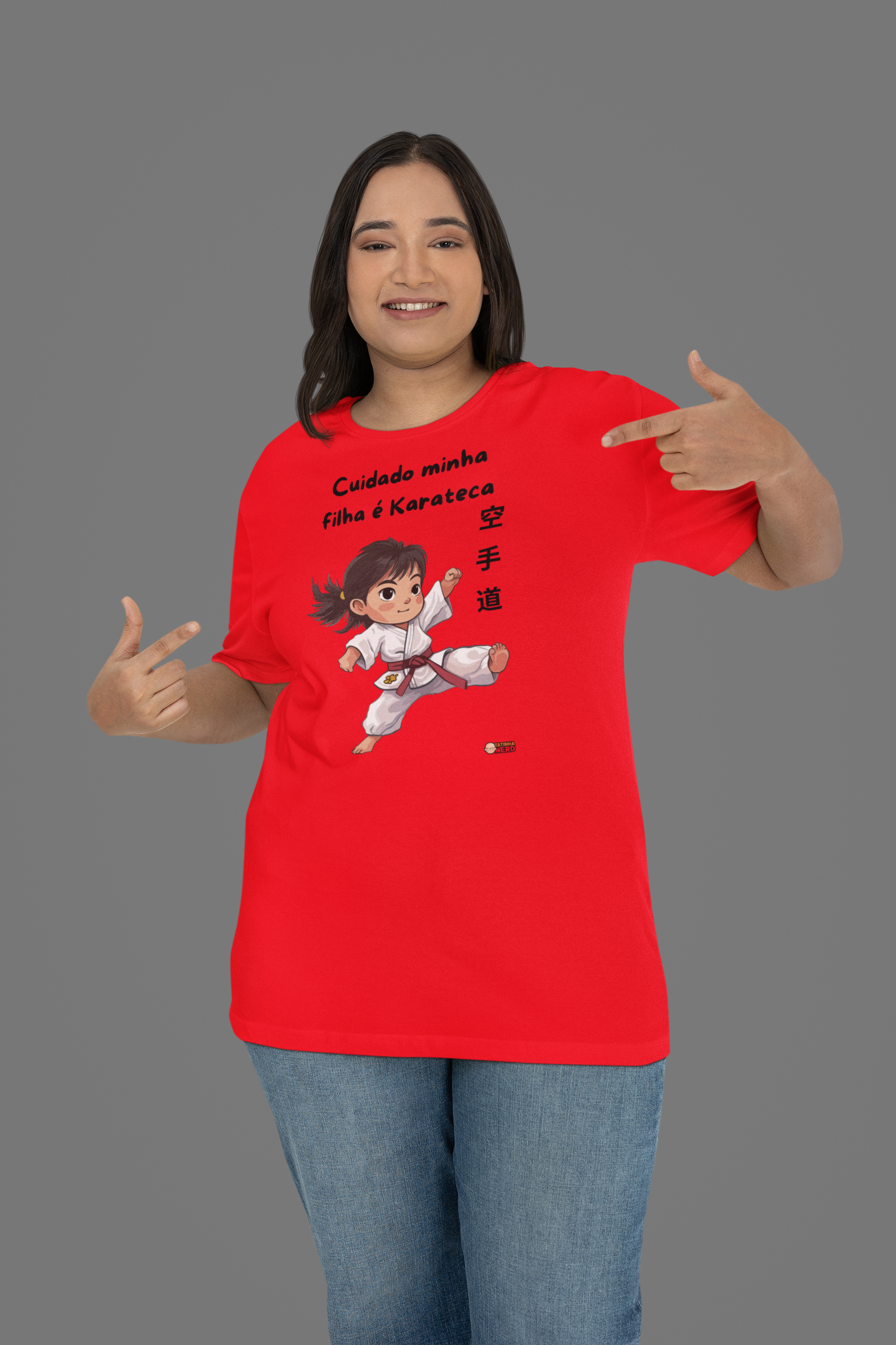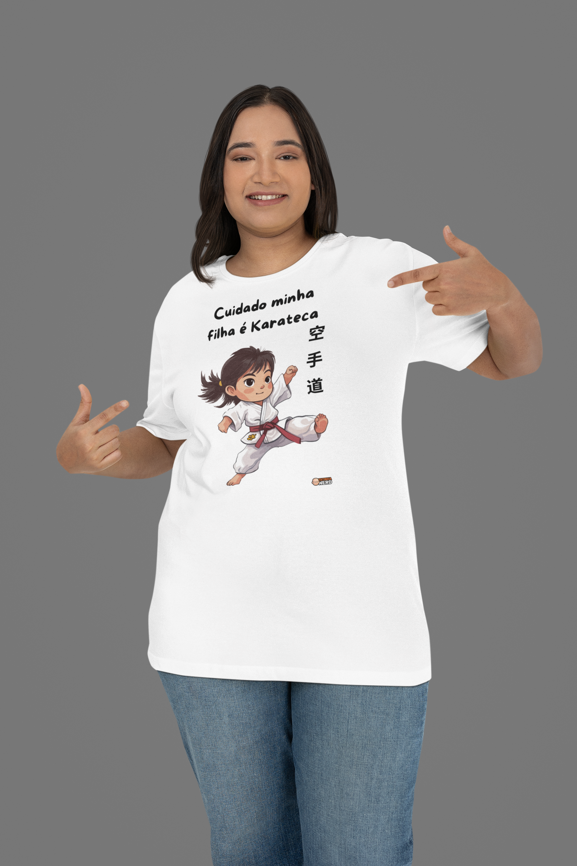 Apresentamos a camiseta “Cuidado! Minha filha é Karateca”, perfeita para os pais e responsáveis que têm orgulho de acompanhar a trajetória da pequena guerreira no tatame. Com uma estampa divertida e cheia de atitude, essa peça expressa o orgulho e a dedicação dos pais no apoio à prática do karatê. Ideal para ser usada em campeonatos, treinos ou no dia a dia, essa camiseta mostra ao mundo que sua filha é uma verdadeira lutadora!