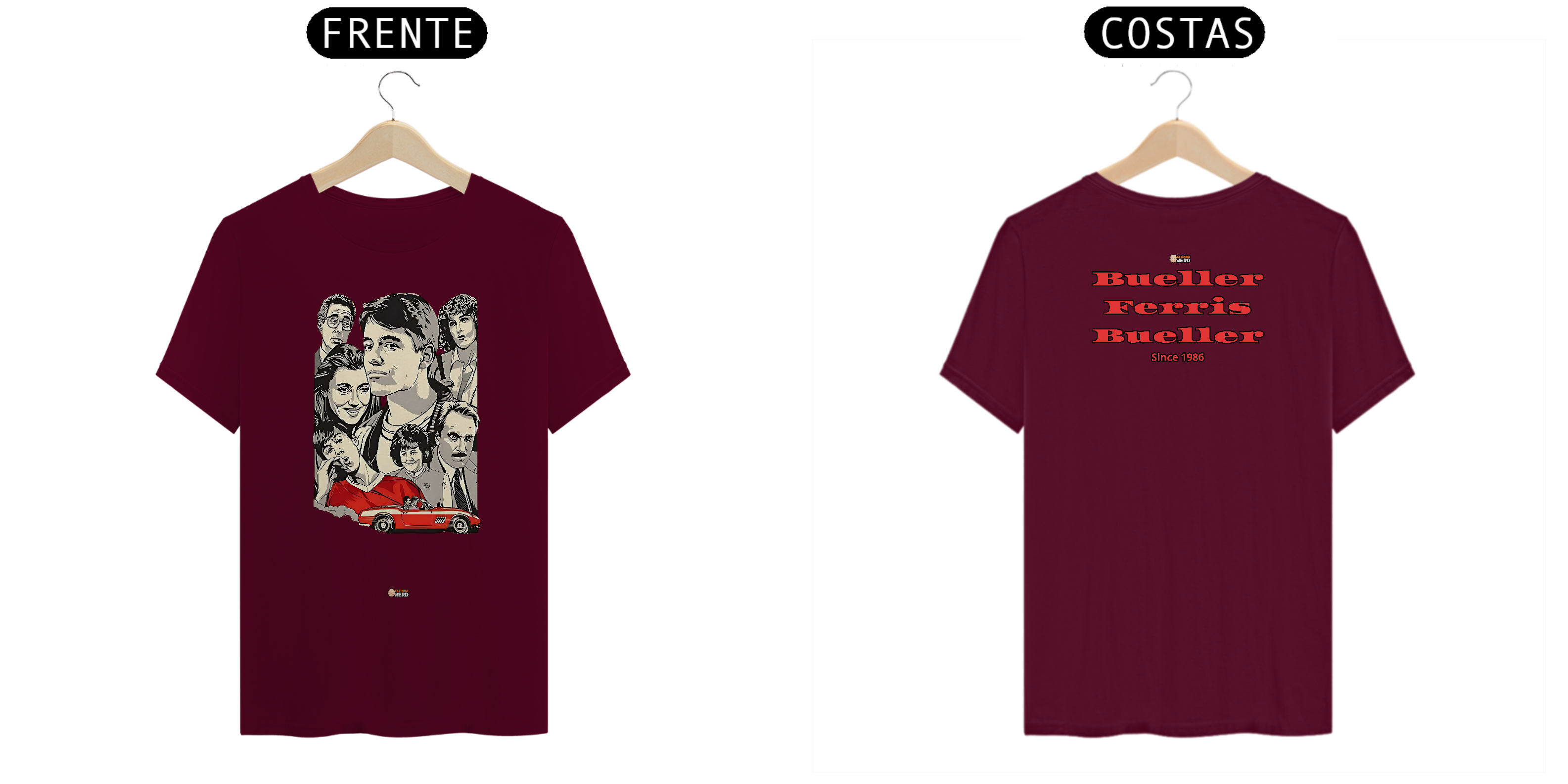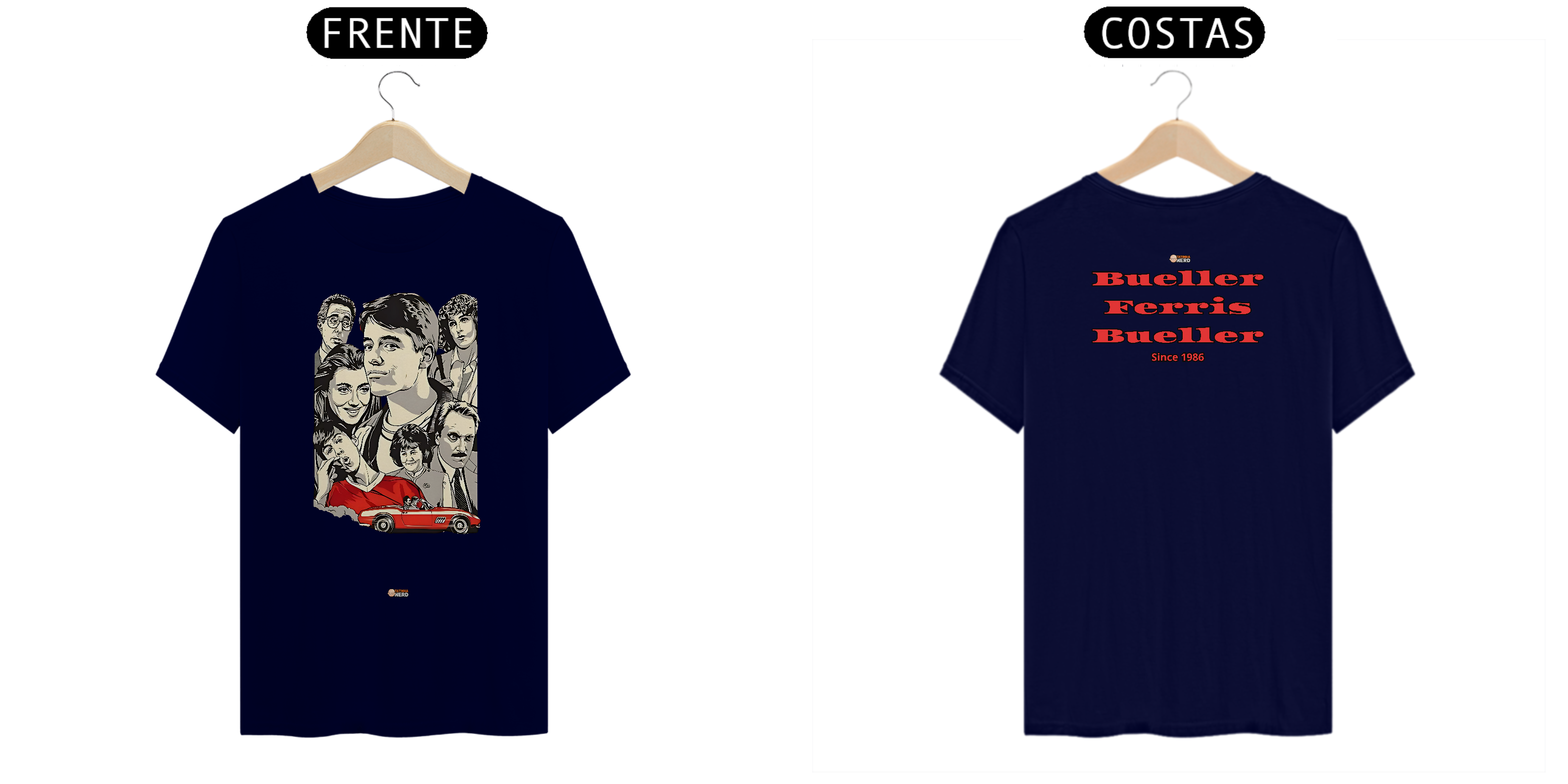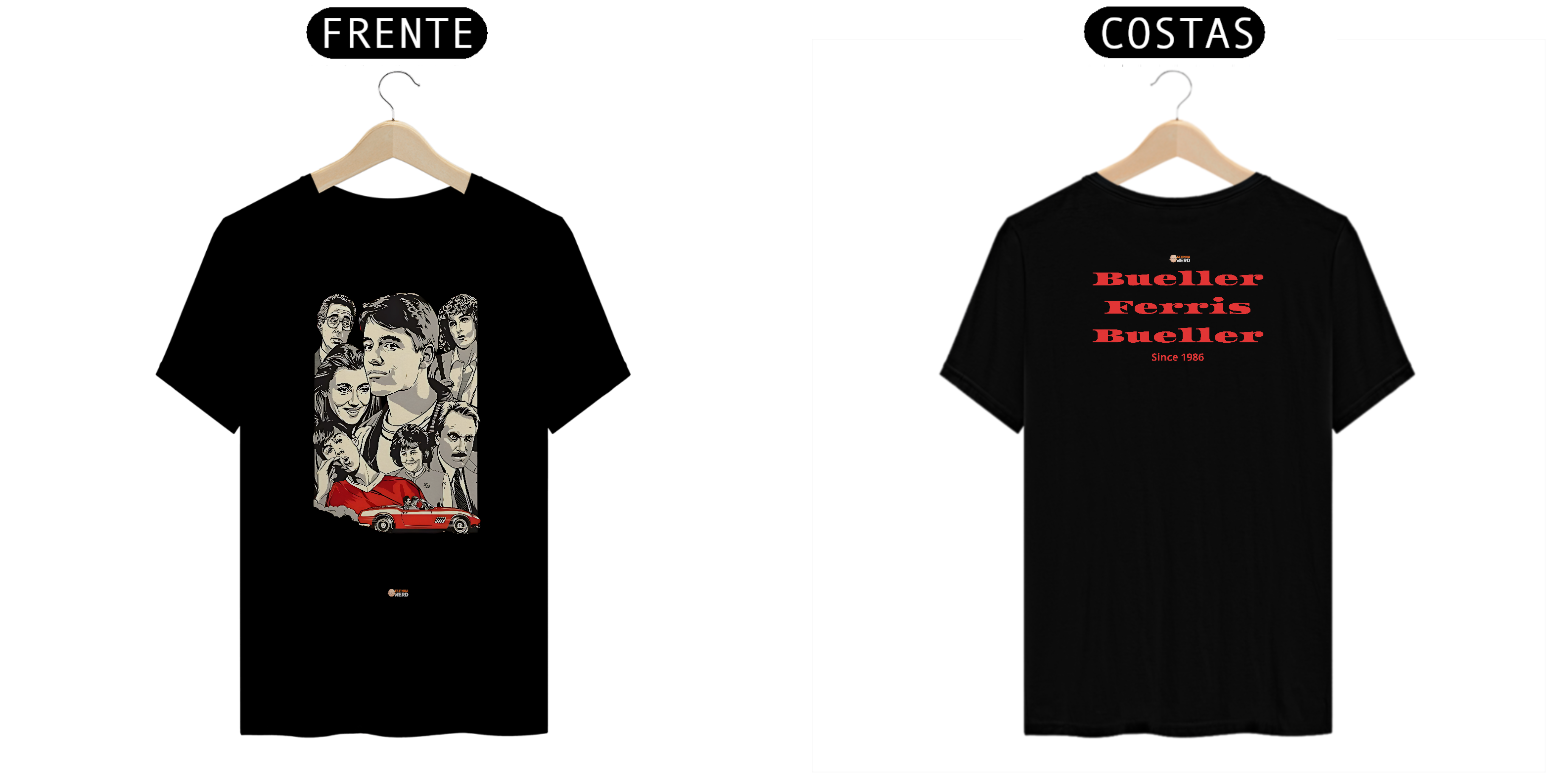 Nas costas, o design minimalista com a frase “Bueller Ferris Bueller – Since 1986” em tipografia marcante é um toque especial para quem reconhece e celebra essa comédia atemporal.