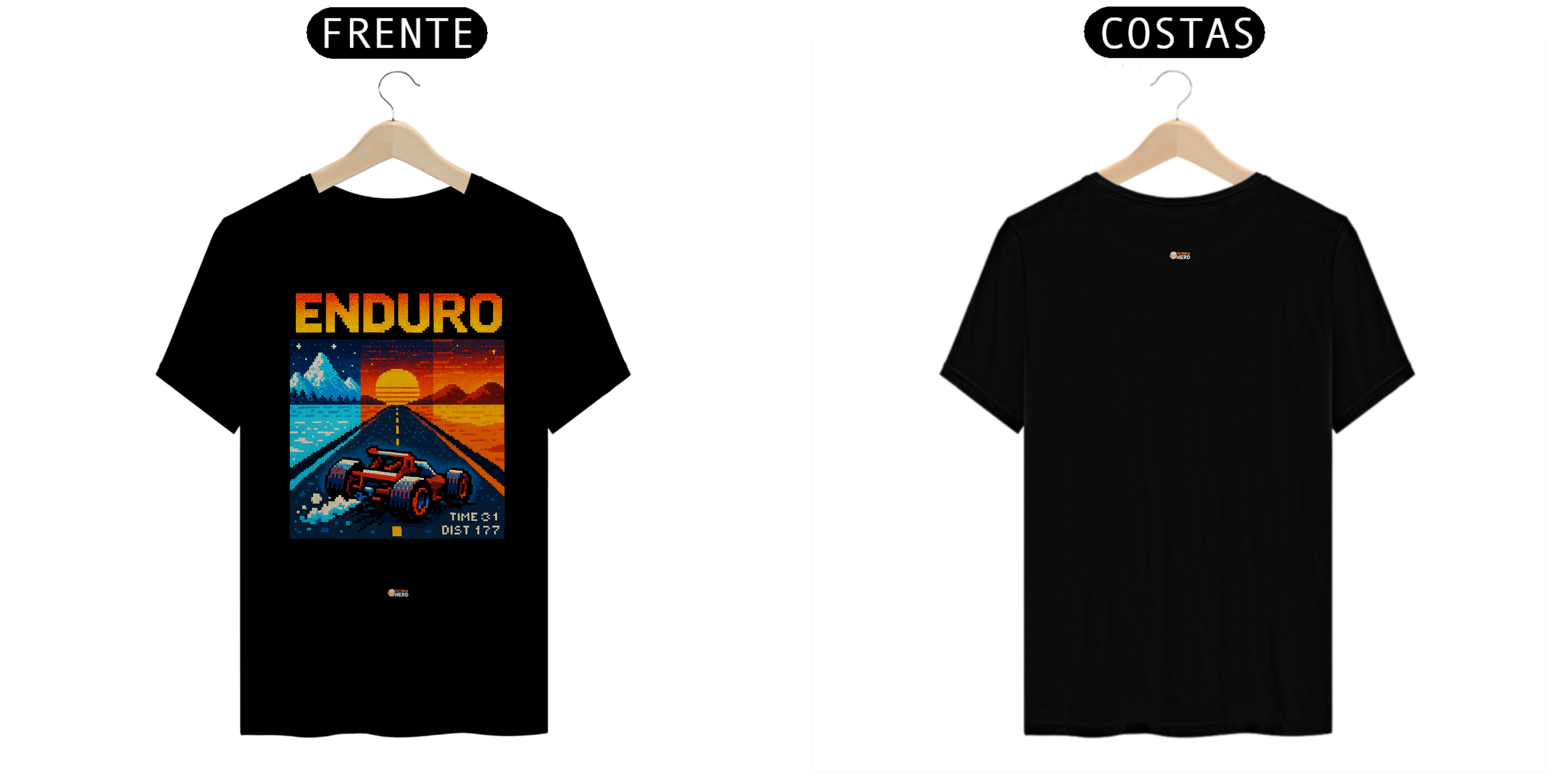 Reviva a emoção das corridas infinitas e mostre sua paixão pelos games retrô com a camiseta Enduro da Tatinha Nerd Store — uma peça que é pura nostalgia e estilo!
