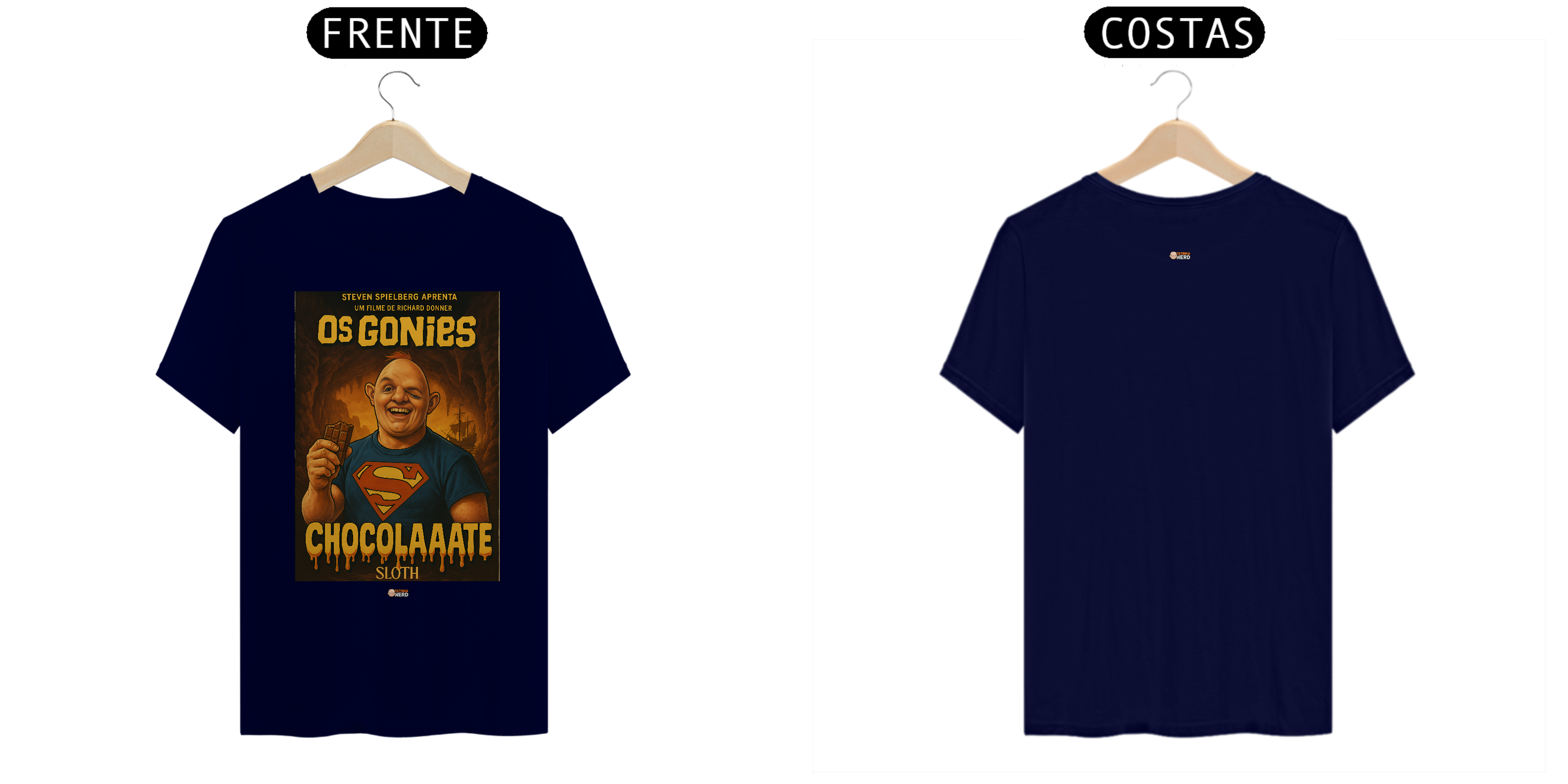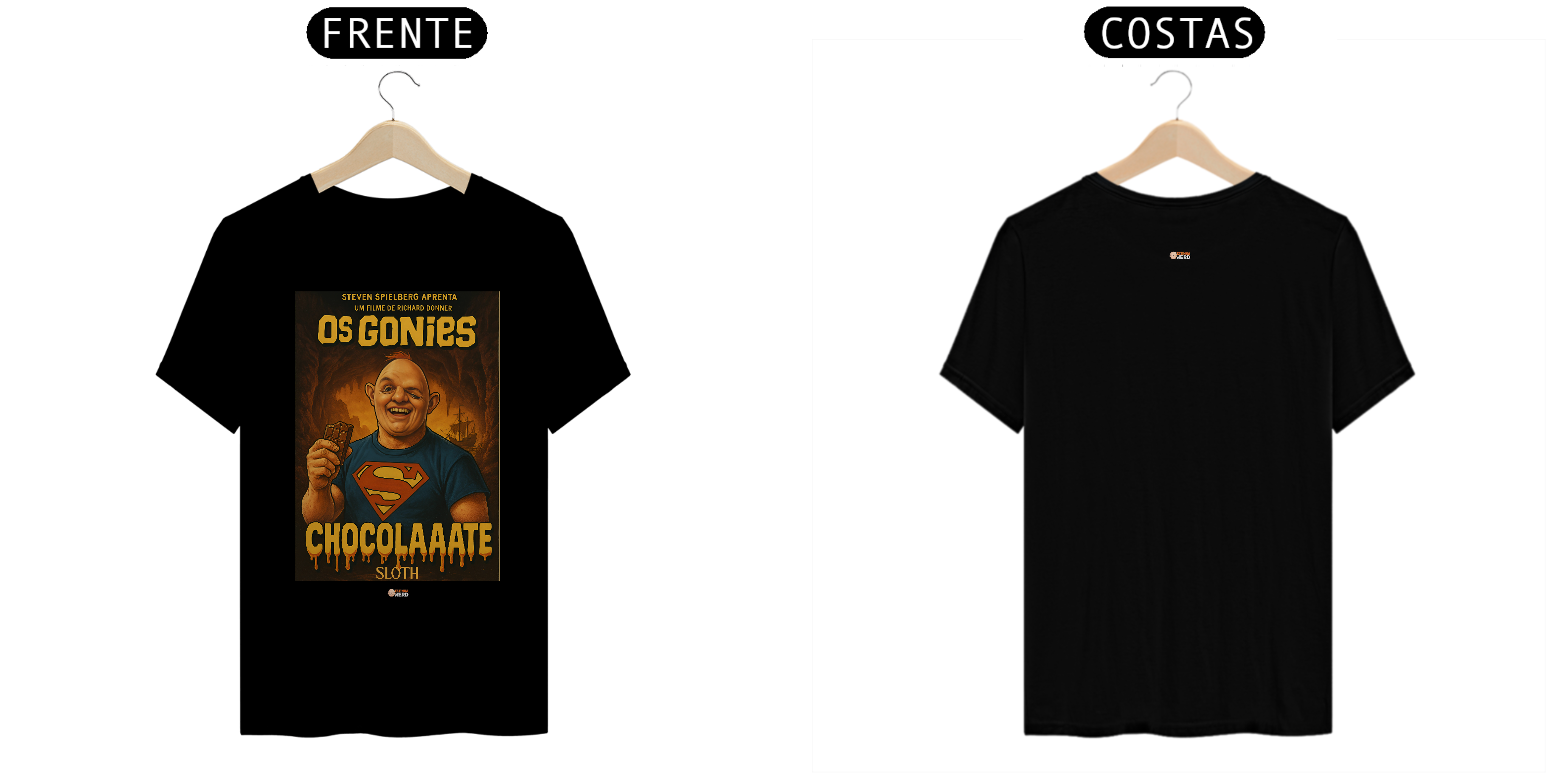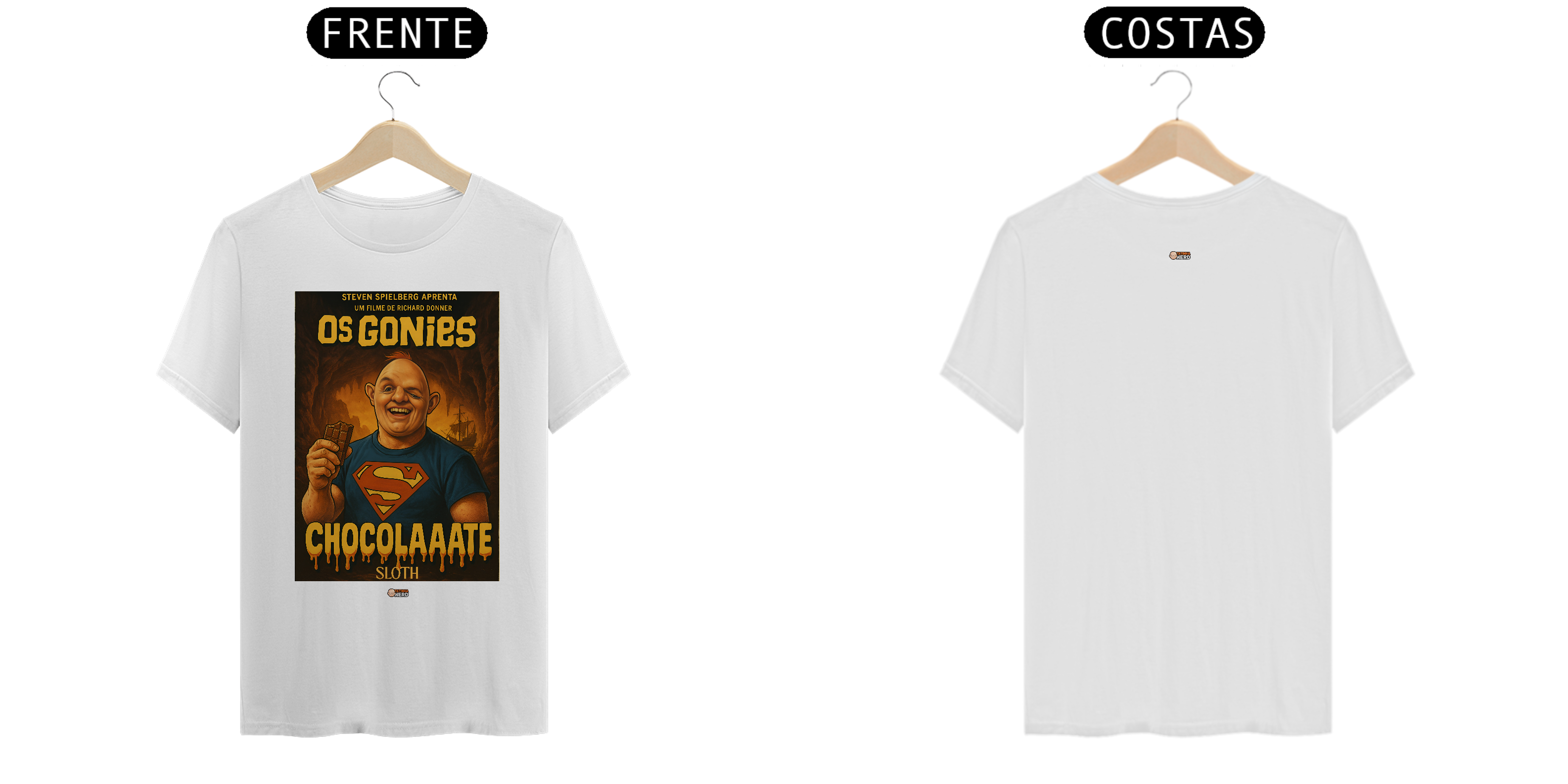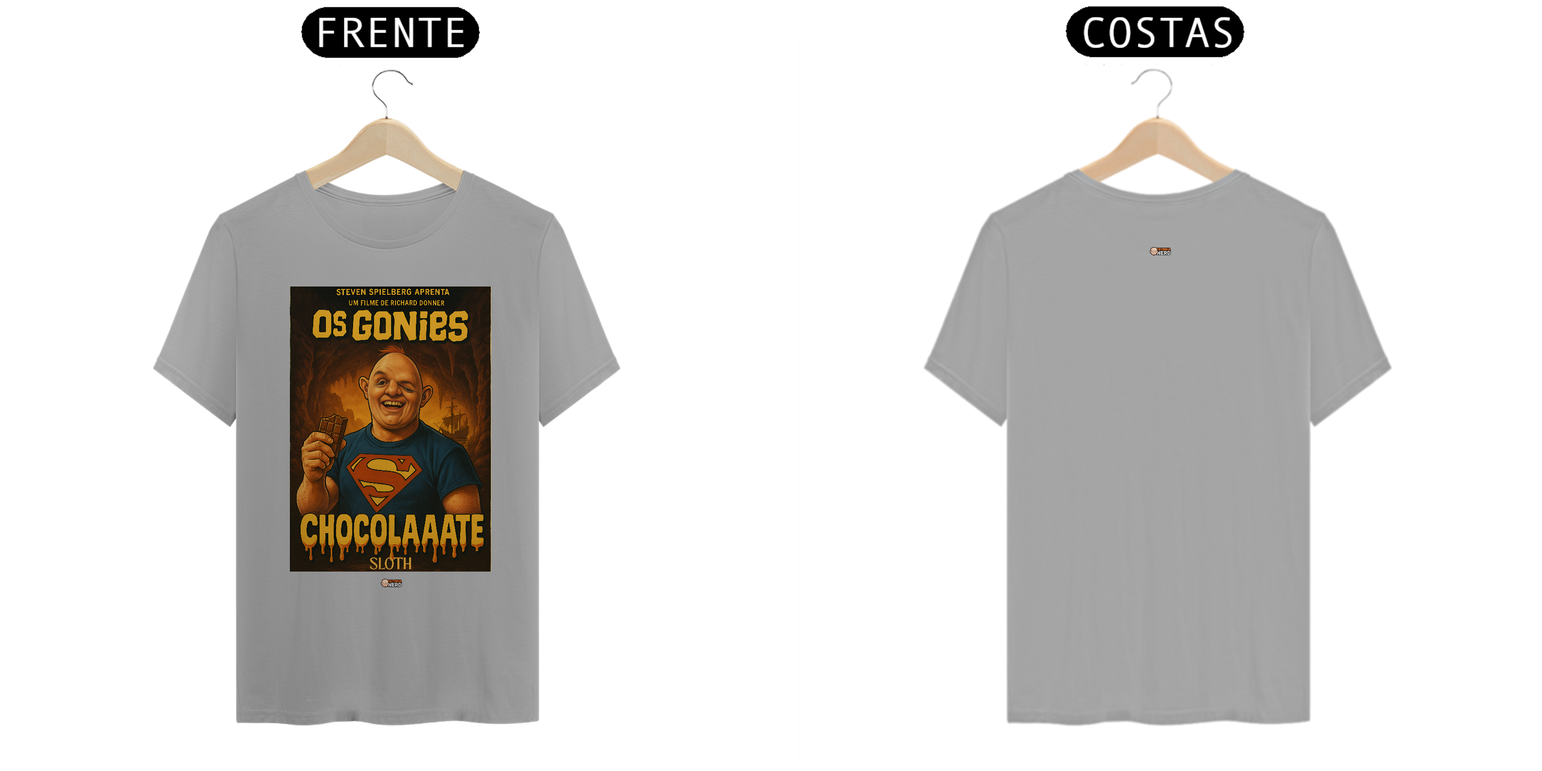 Reviva a magia de um dos maiores clássicos da aventura com a camiseta Goonies da Tatinha Nerd Store! Inspirada no icônico filme de 1985, essa peça traz Sloth, o gigante de coração doce, usando a clássica camisa do Superman e segurando seu inseparável chocolate, acompanhado da famosa frase “ChocolaAaate”. Uma homenagem divertida e nostálgica que vai fazer qualquer fã de cinema sorrir.