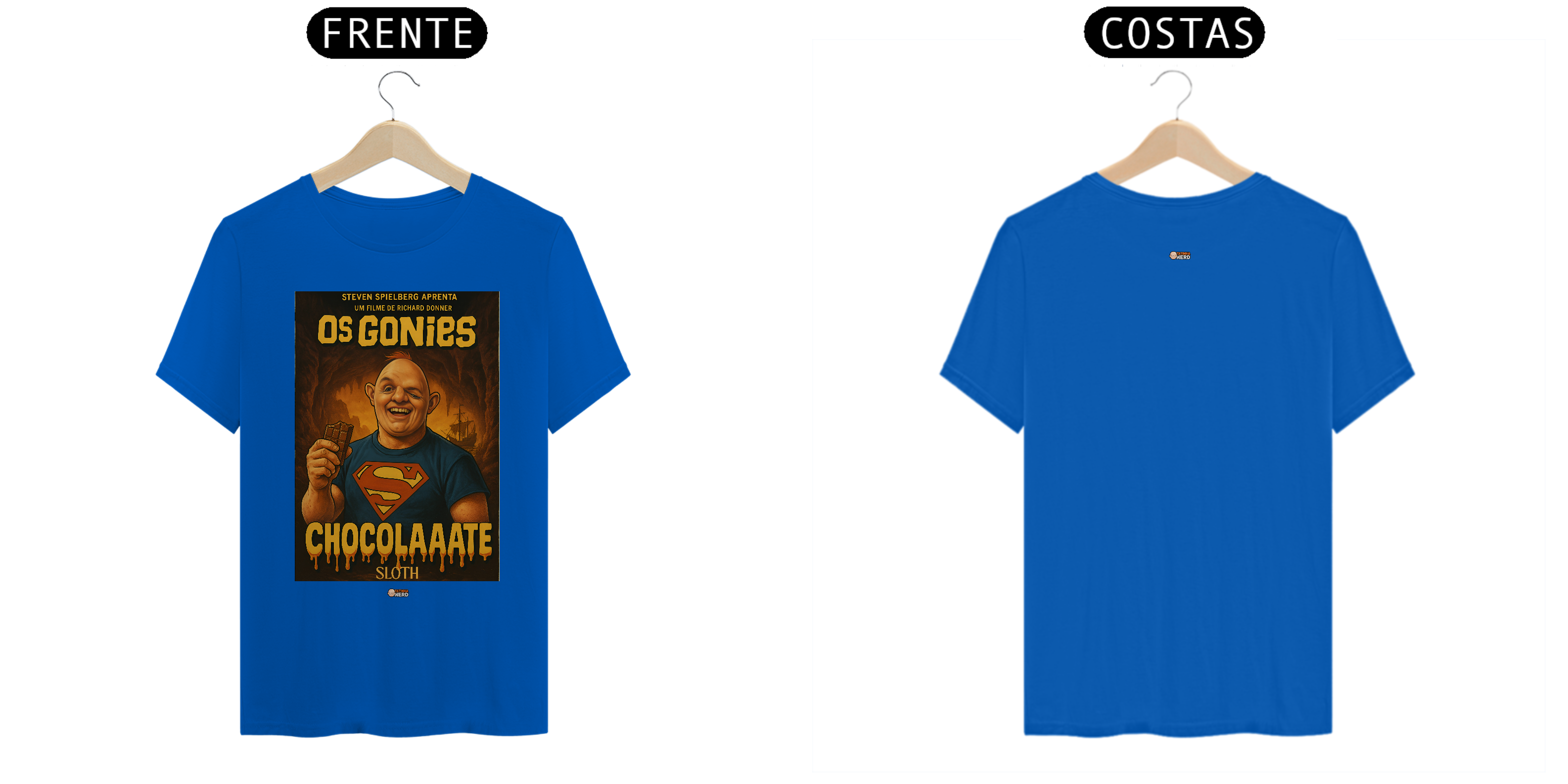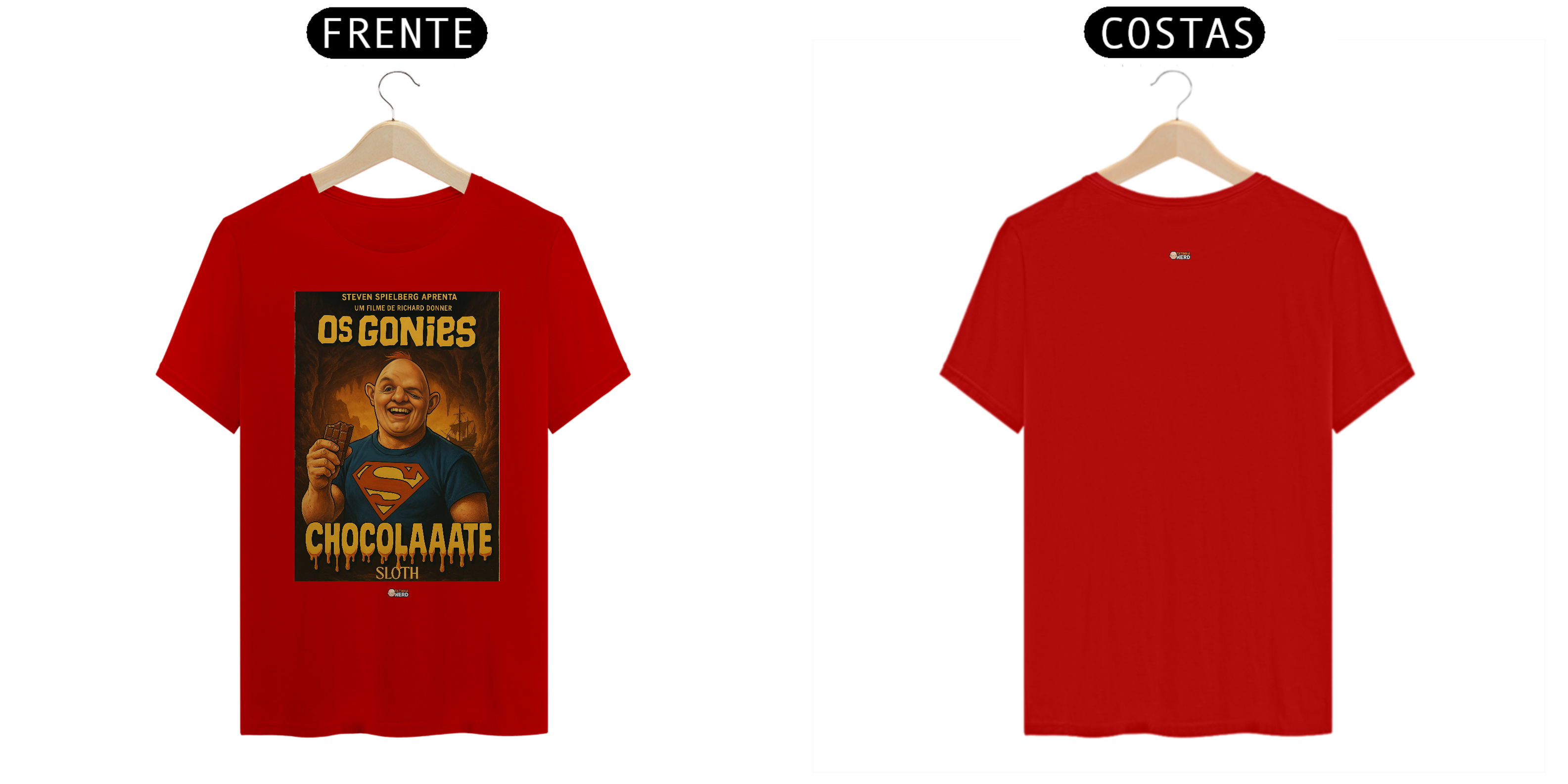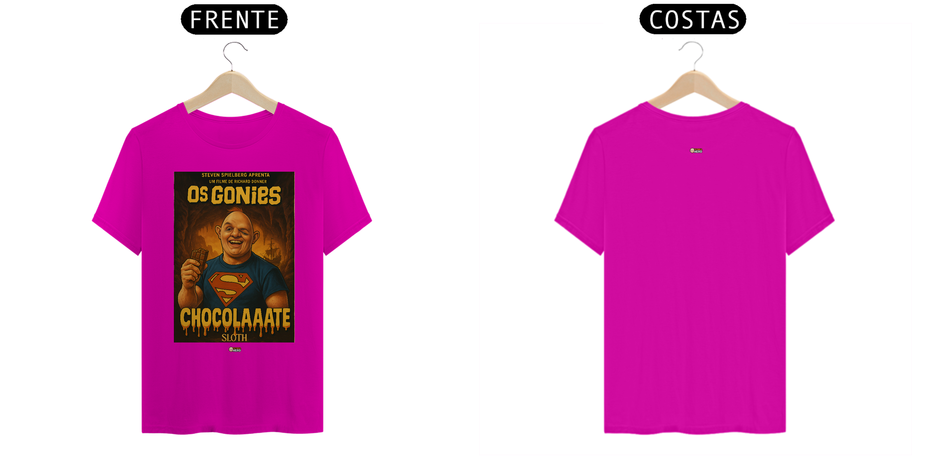 Reviva a magia de um dos maiores clássicos da aventura com a camiseta Goonies da Tatinha Nerd Store! Inspirada no icônico filme de 1985, essa peça traz Sloth, o gigante de coração doce, usando a clássica camisa do Superman e segurando seu inseparável chocolate, acompanhado da famosa frase “ChocolaAaate”. Uma homenagem divertida e nostálgica que vai fazer qualquer fã de cinema sorrir.