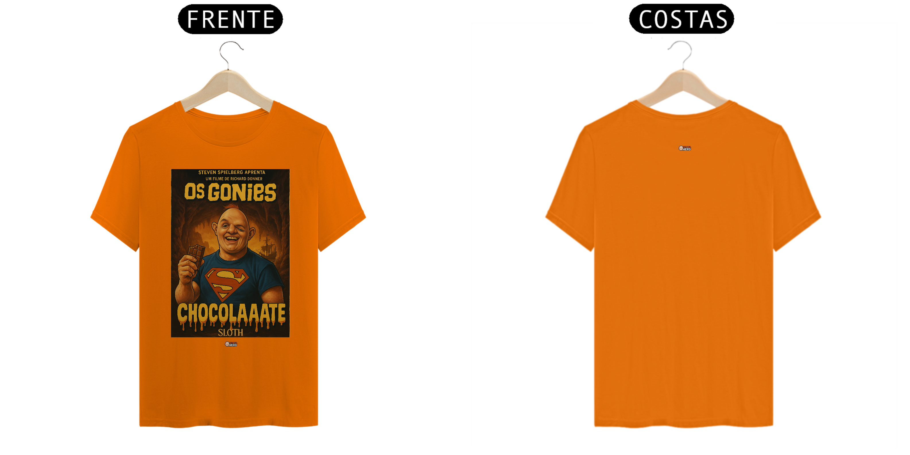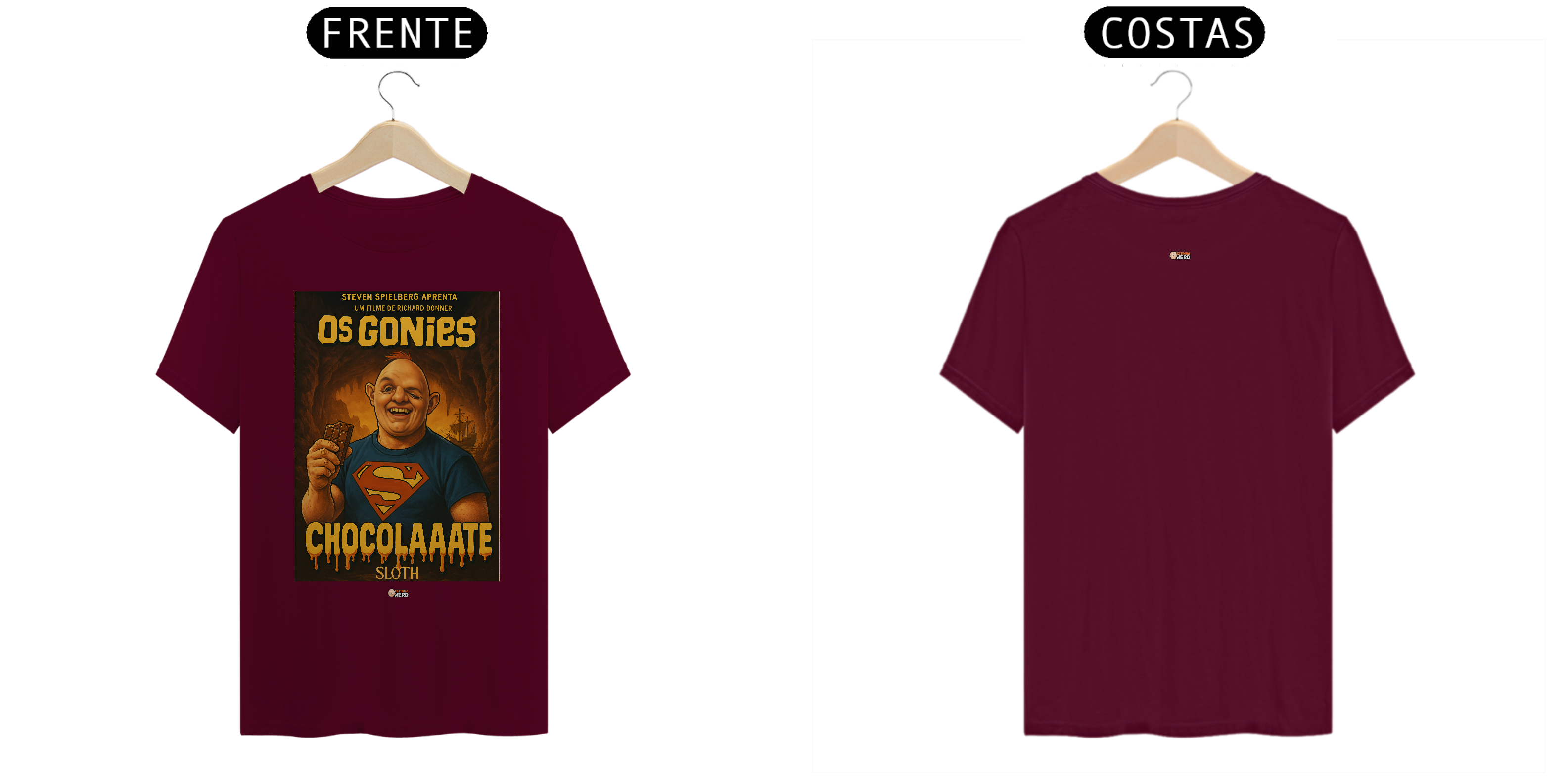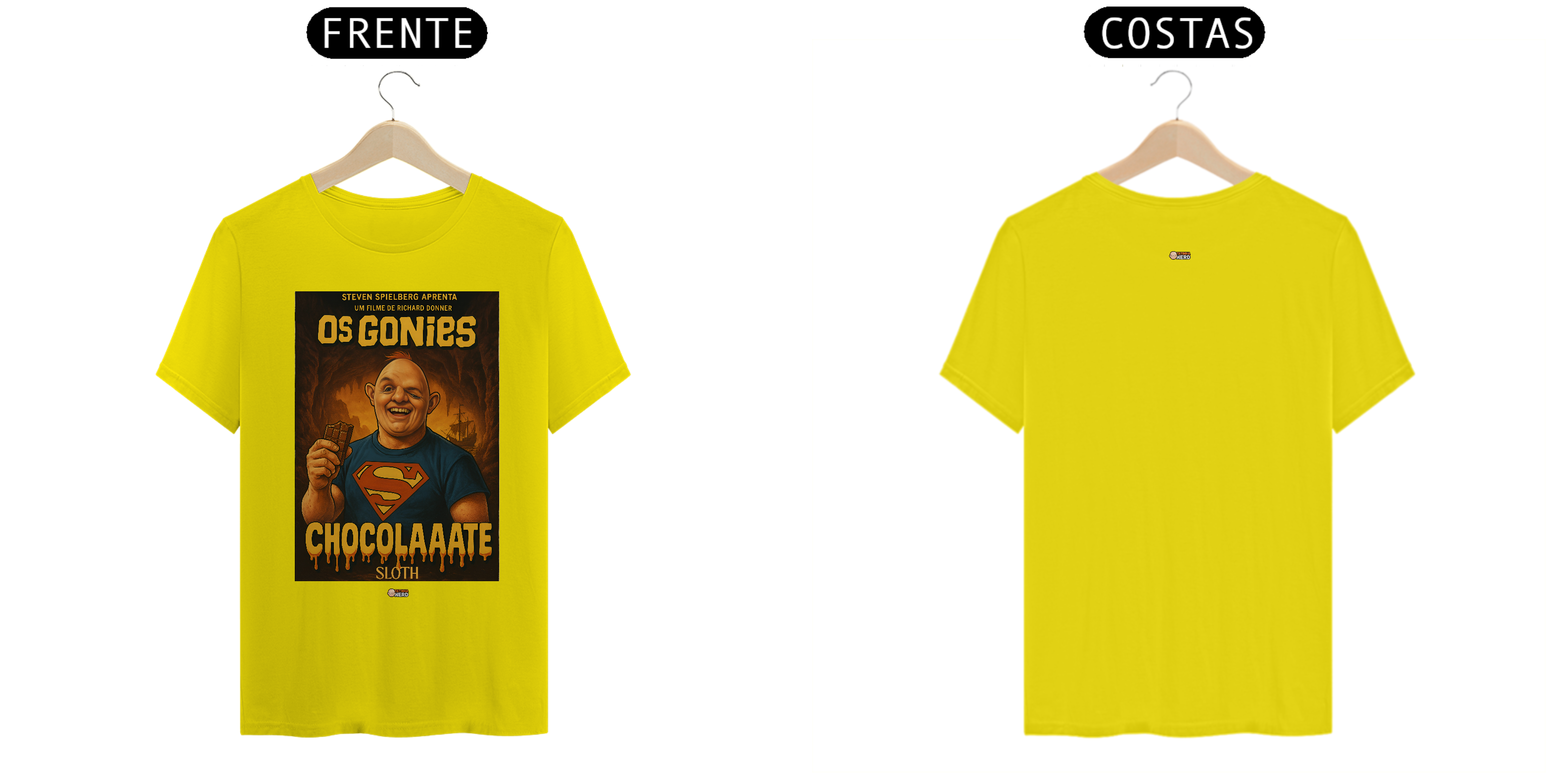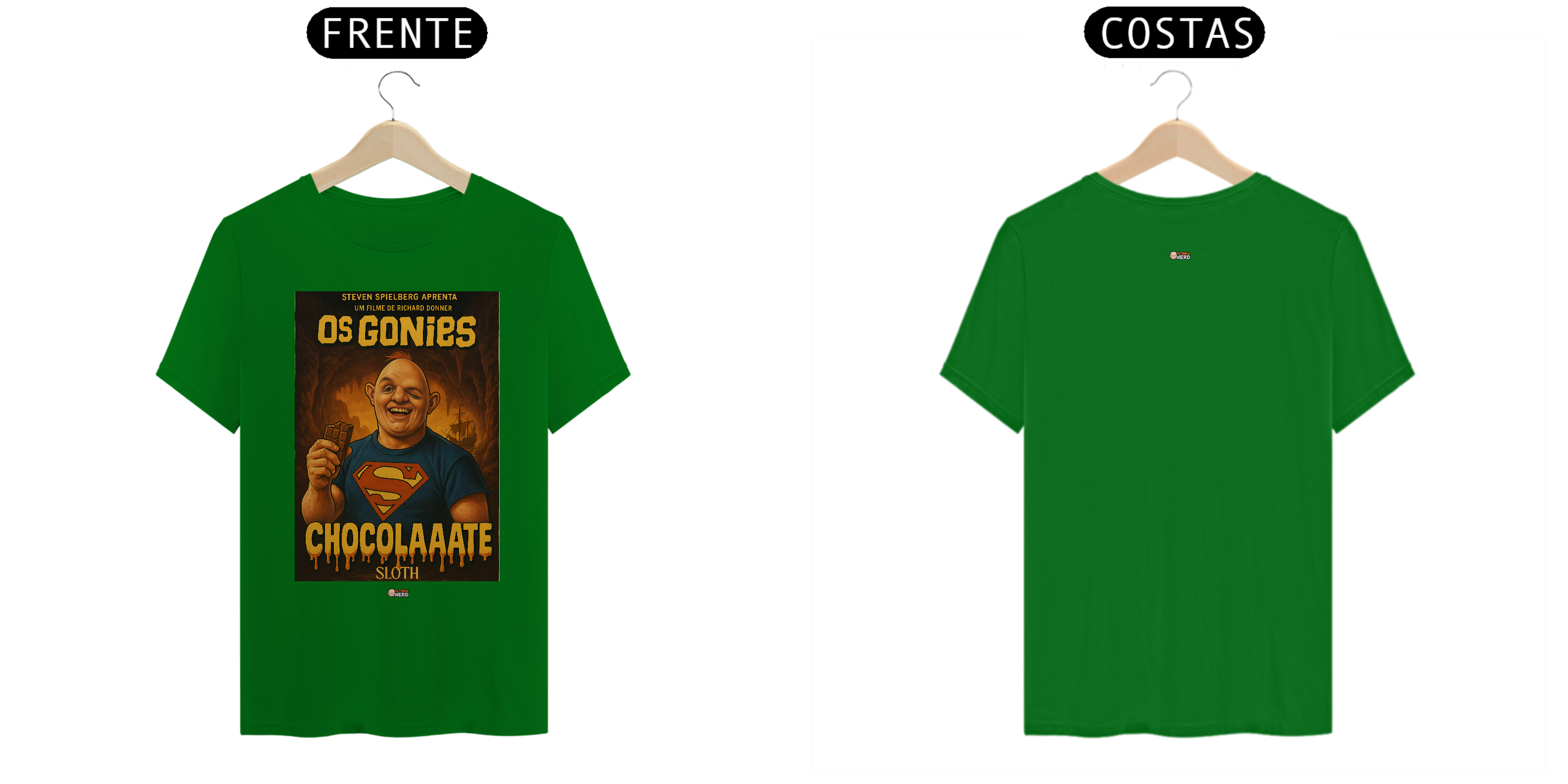 Reviva a magia de um dos maiores clássicos da aventura com a camiseta Goonies da Tatinha Nerd Store! Inspirada no icônico filme de 1985, essa peça traz Sloth, o gigante de coração doce, usando a clássica camisa do Superman e segurando seu inseparável chocolate, acompanhado da famosa frase “ChocolaAaate”. Uma homenagem divertida e nostálgica que vai fazer qualquer fã de cinema sorrir.