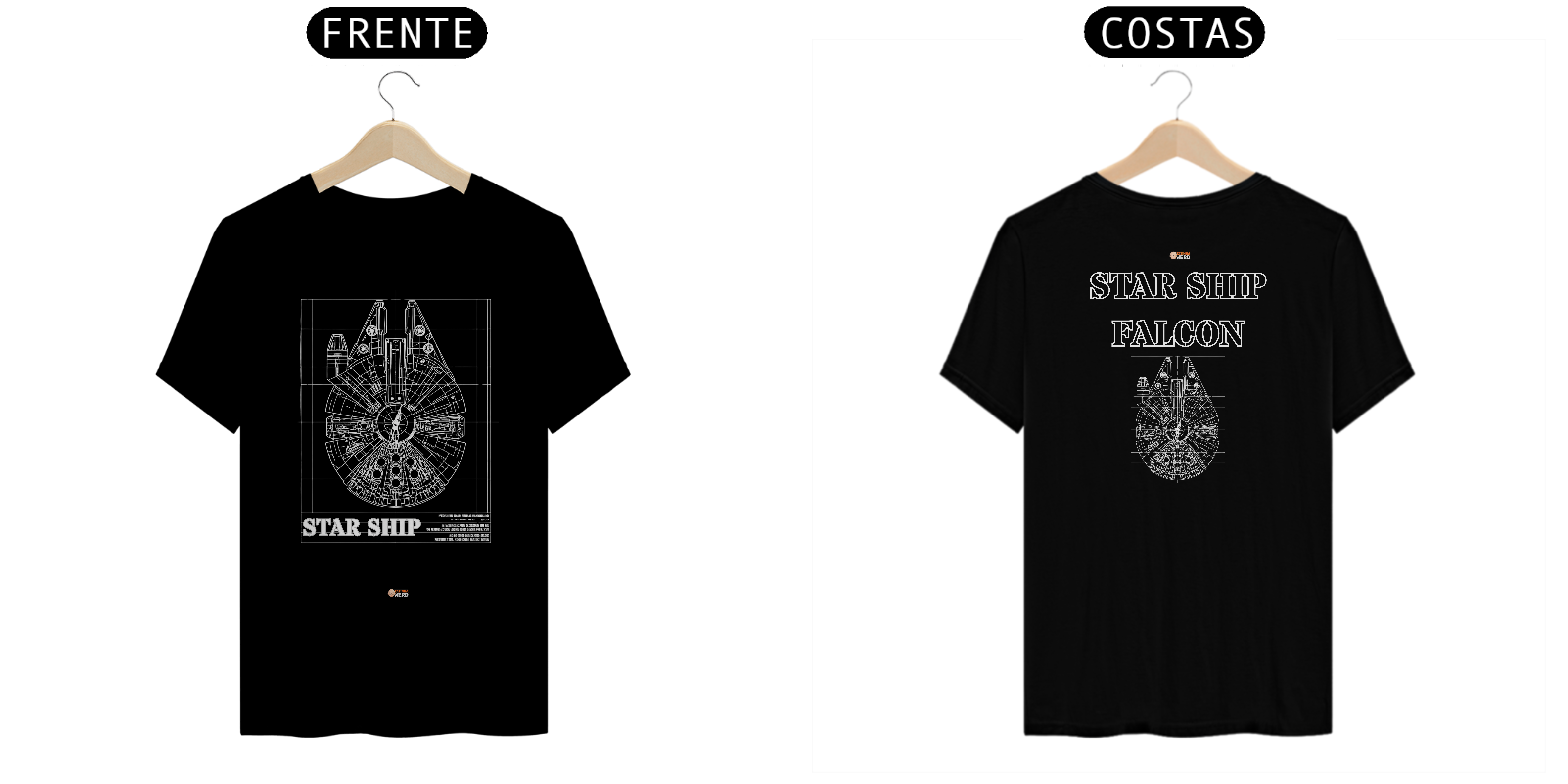 Vista o espírito explorador das galáxias e leve o design técnico da nave mais famosa do universo geek com a camiseta Star Ship Falcon da Tatinha Nerd Store!