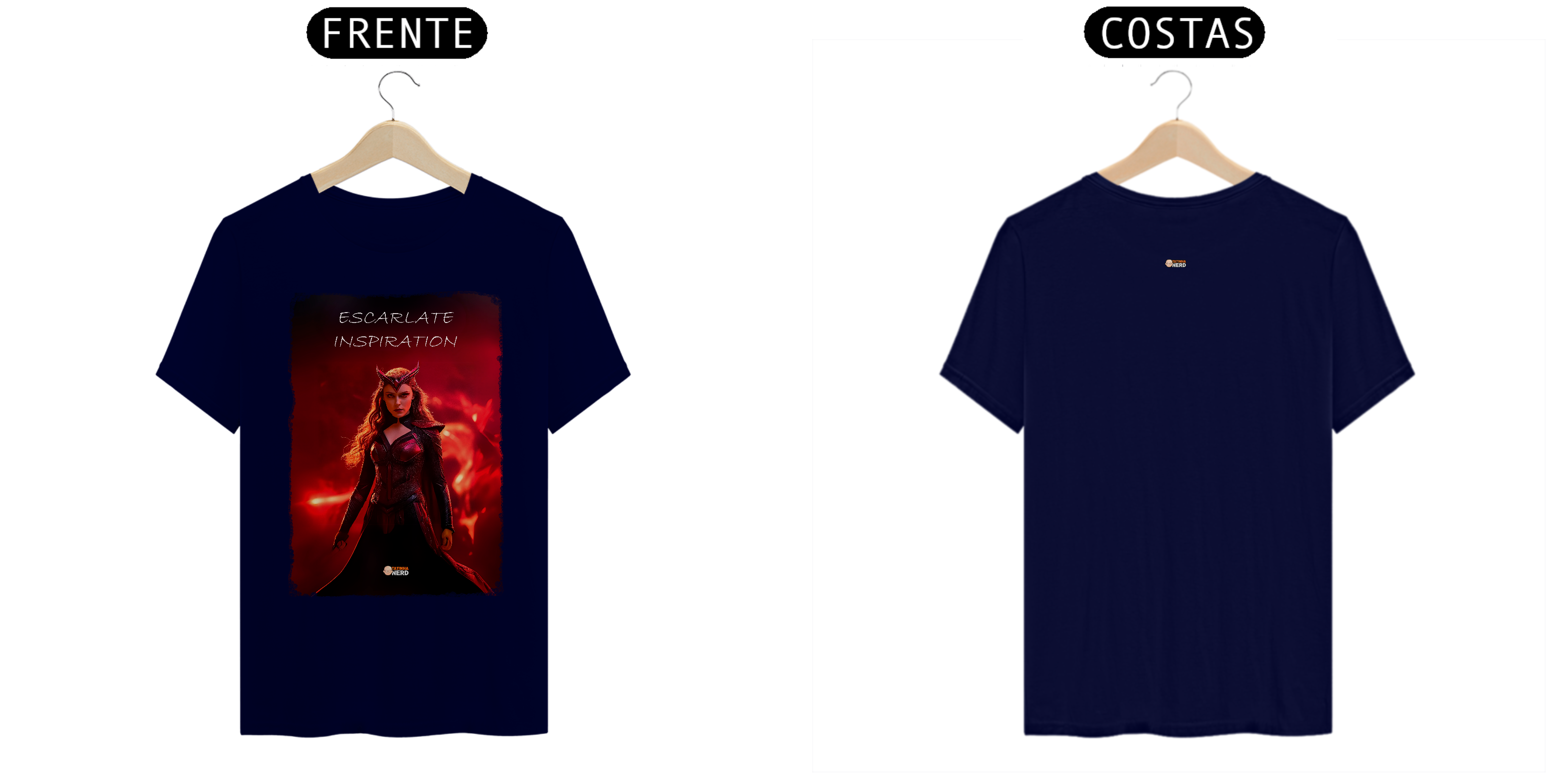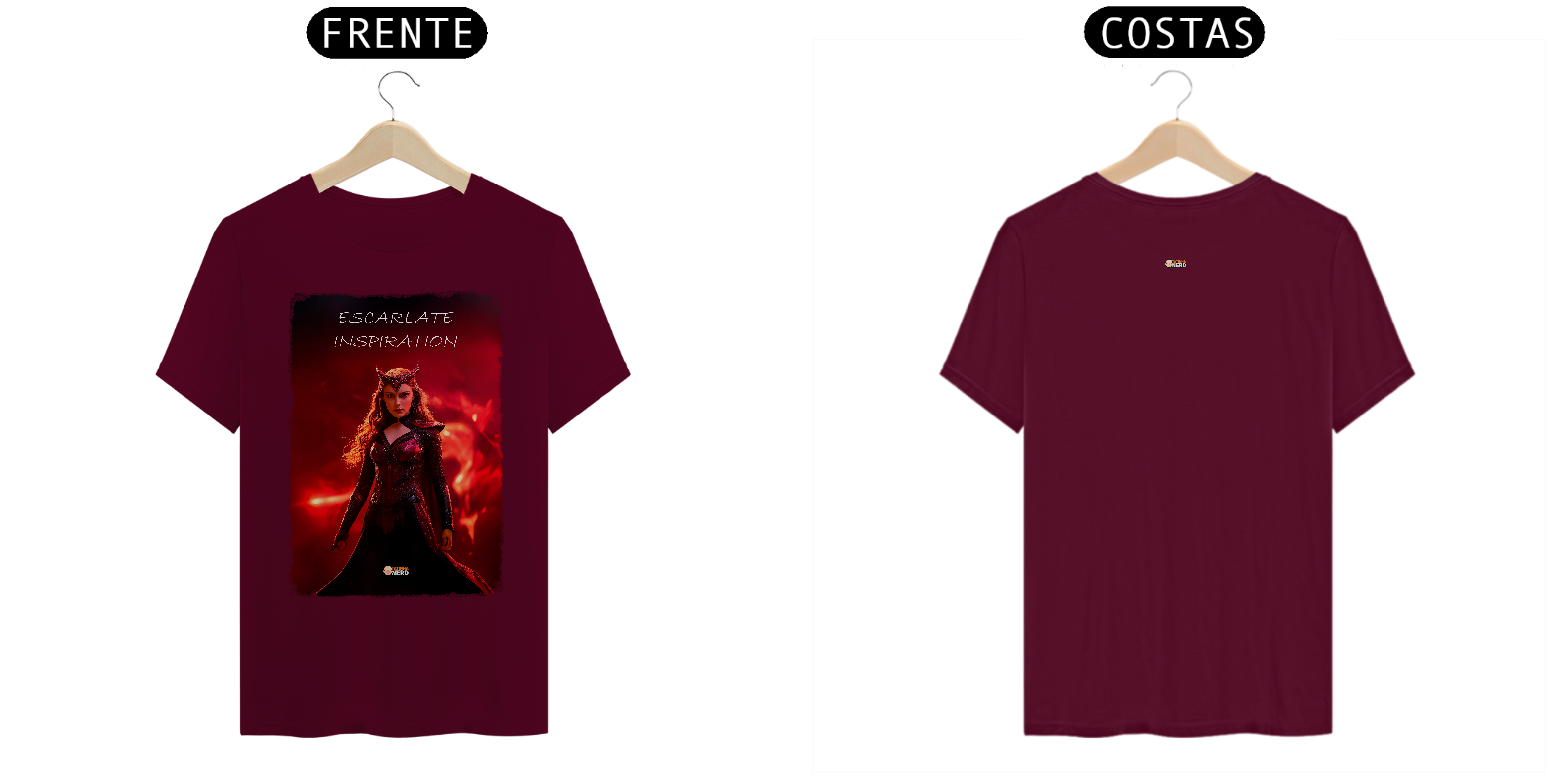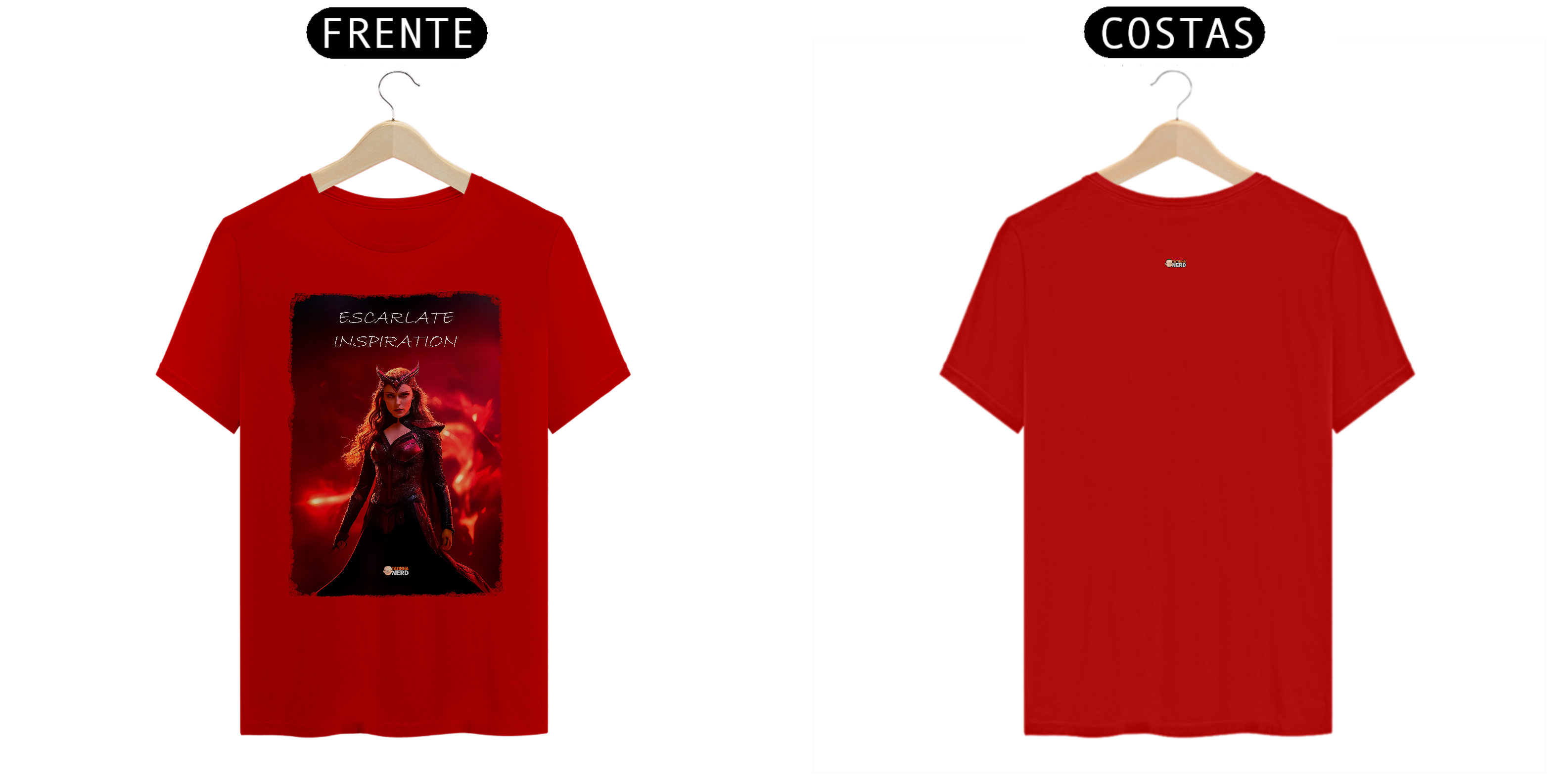 A frase "Escarlate Inspiration" reflete a essência da personagem: força, determinação e coragem. O design foi criado para fãs que se conectam com a dualidade de Wanda como heroína e vilã, tornando esta peça indispensável para os admiradores do universo Marvel.
