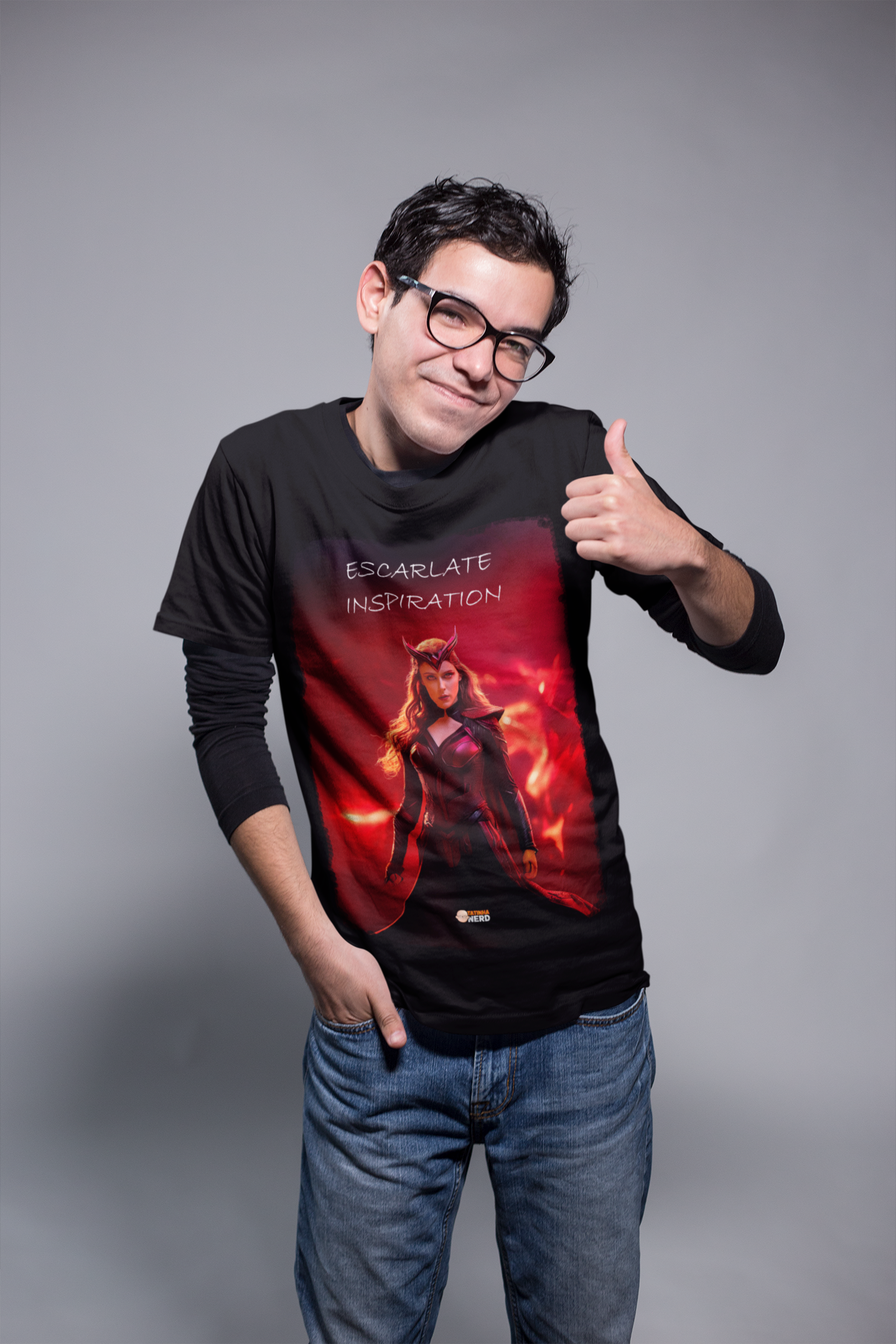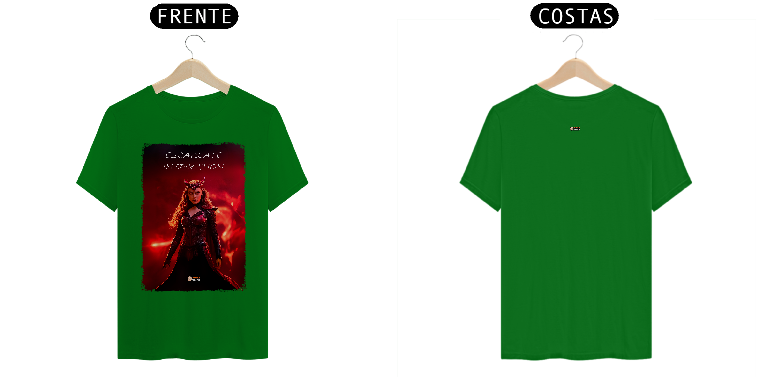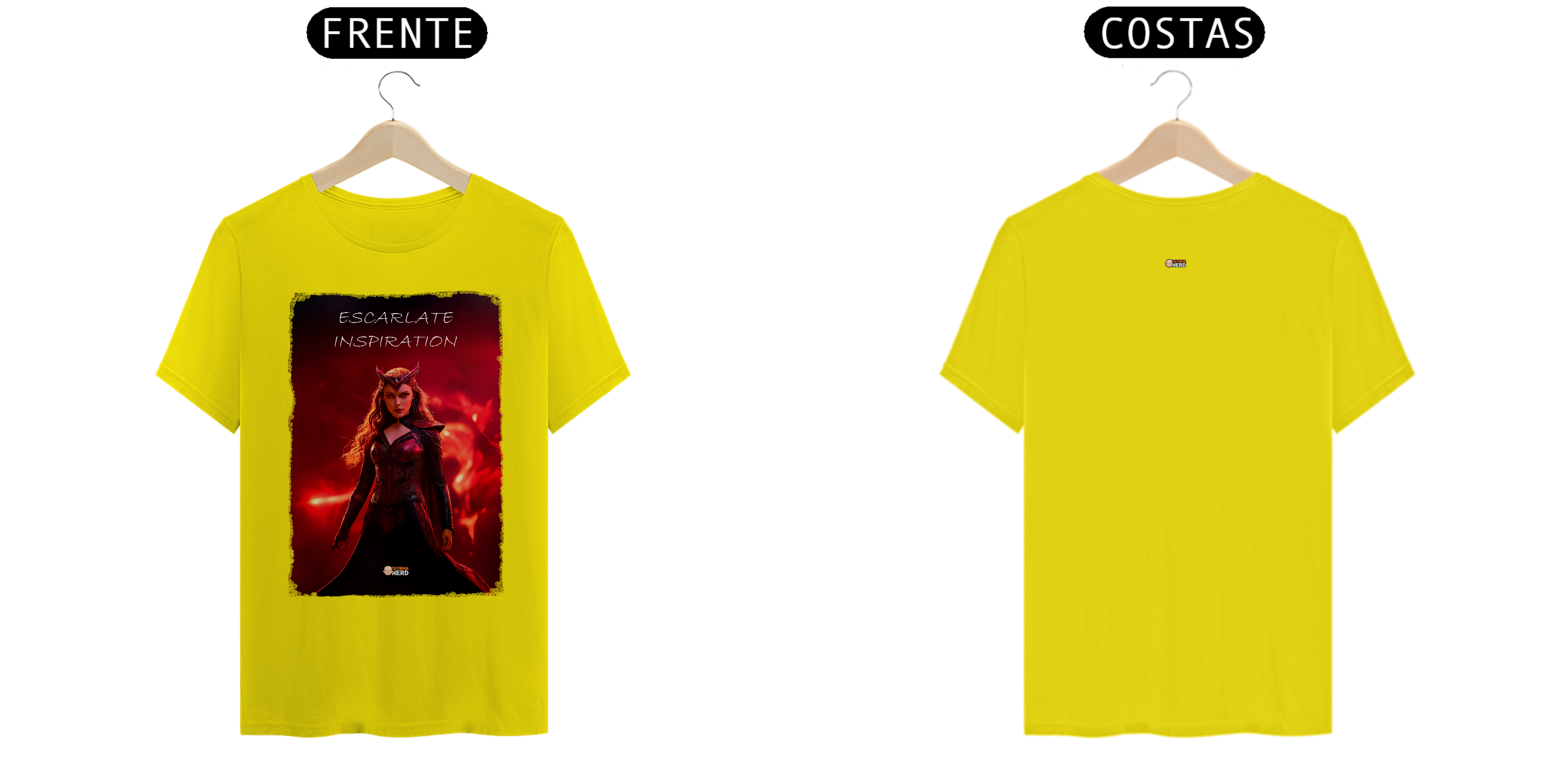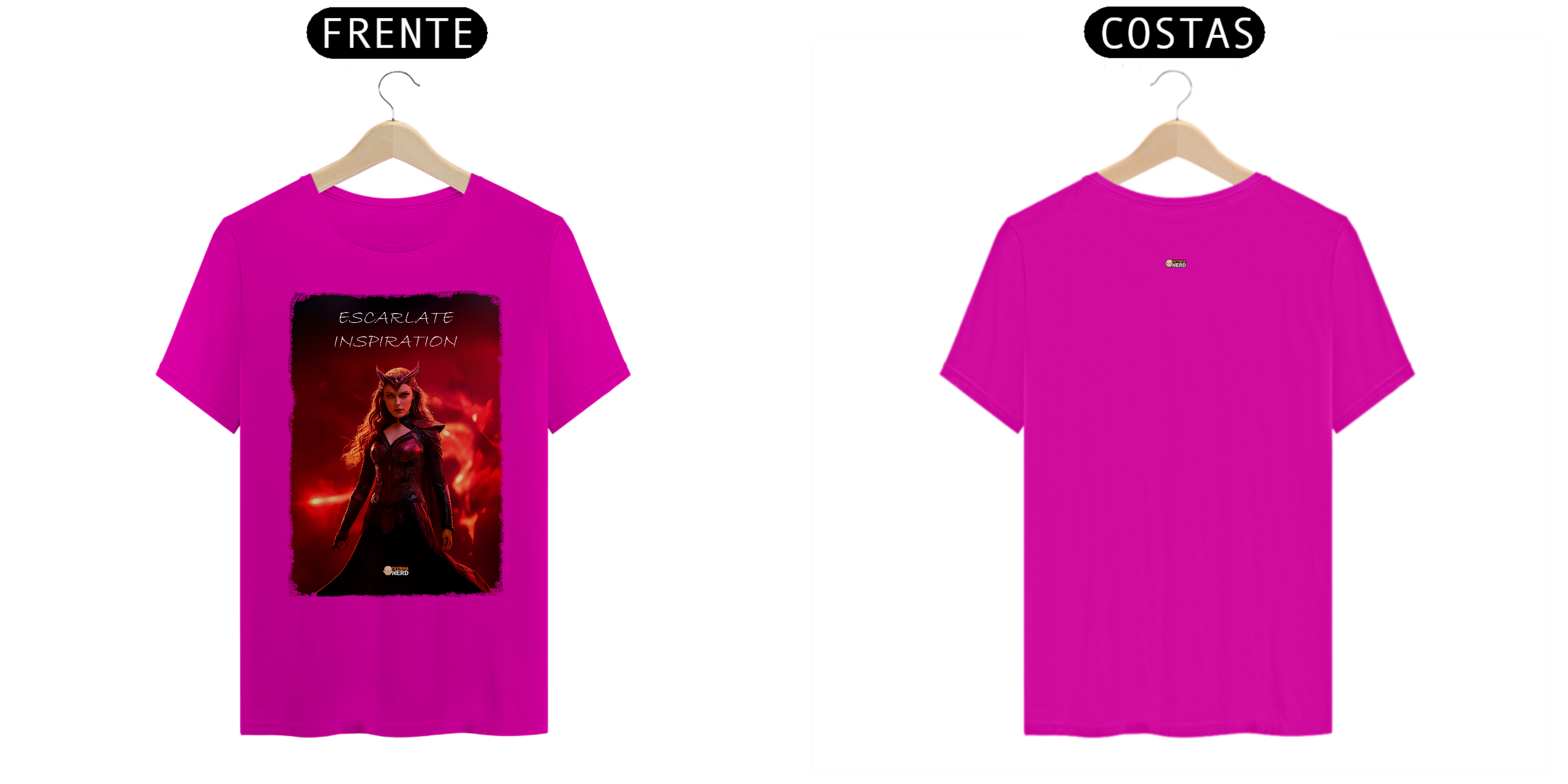 A frase "Escarlate Inspiration" reflete a essência da personagem: força, determinação e coragem. O design foi criado para fãs que se conectam com a dualidade de Wanda como heroína e vilã, tornando esta peça indispensável para os admiradores do universo Marvel.