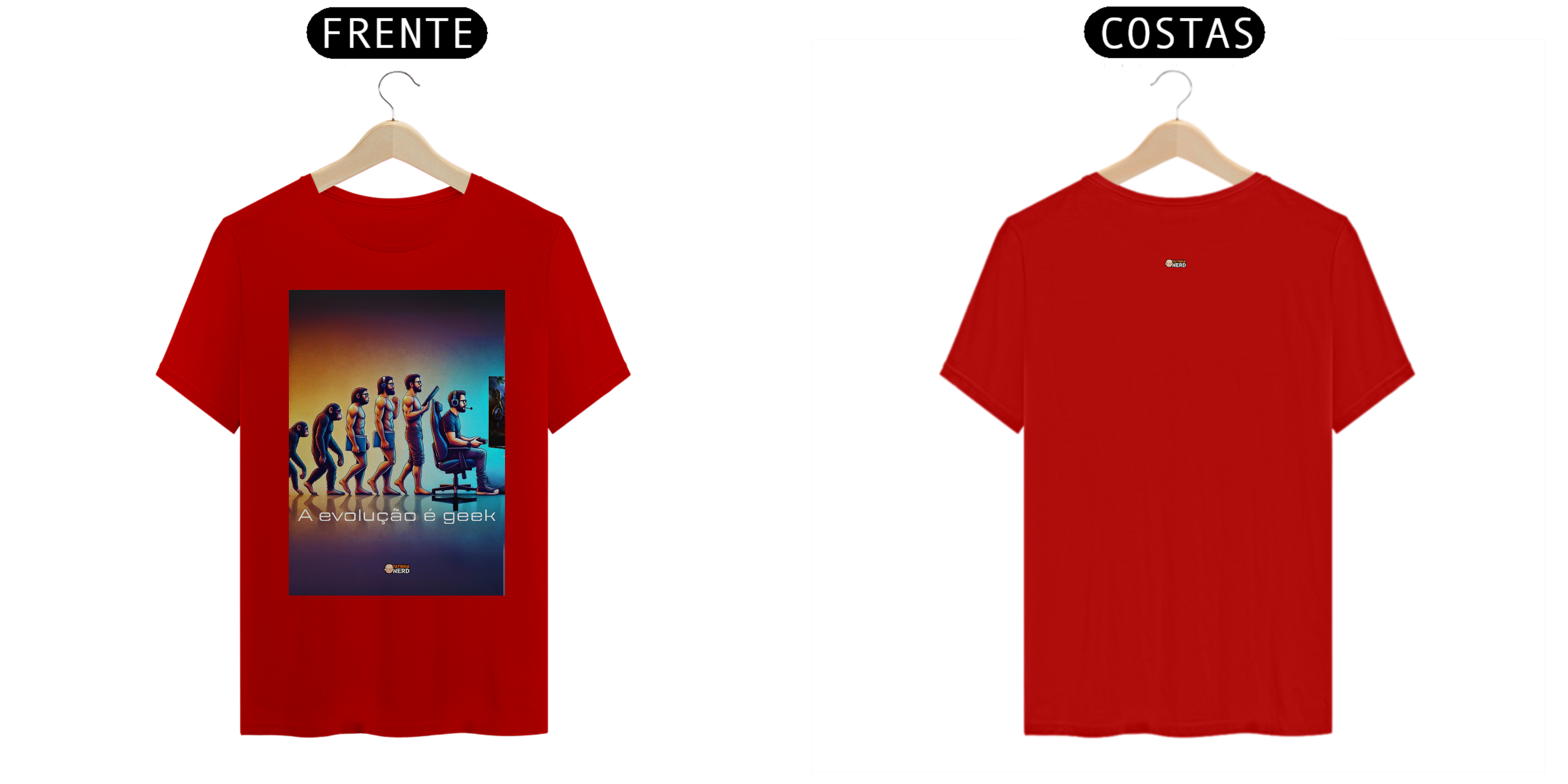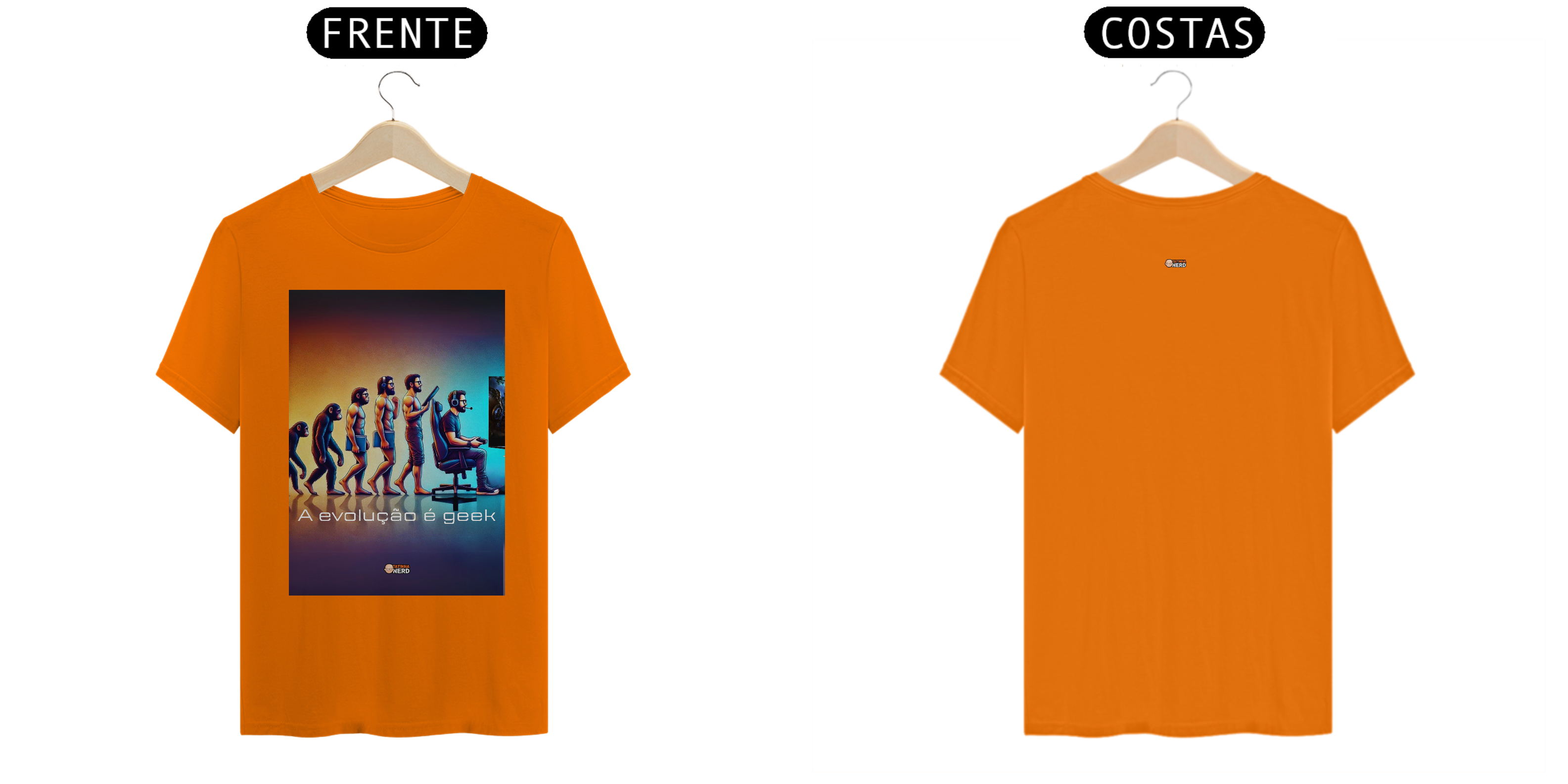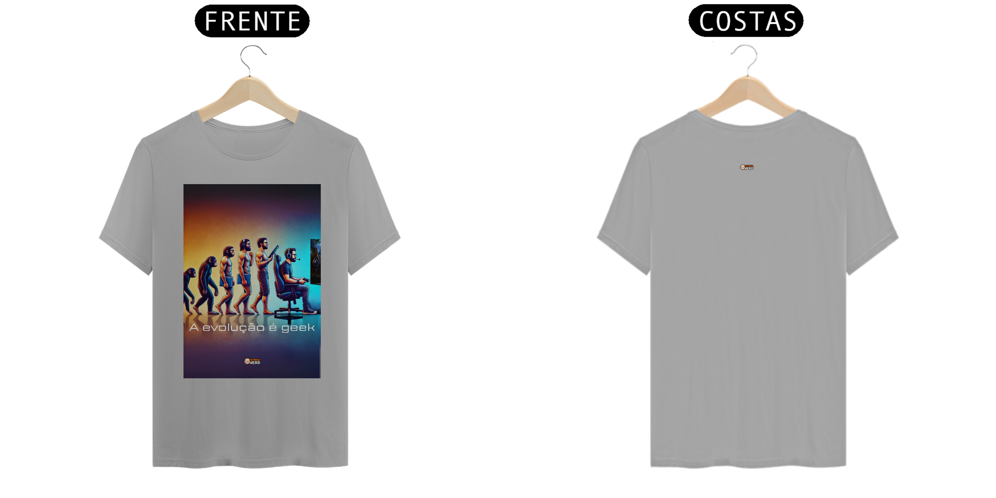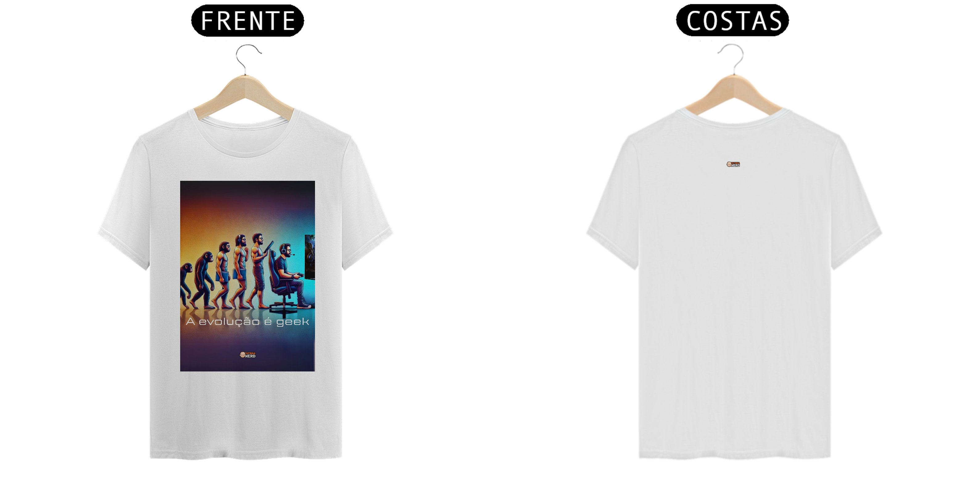 Celebre a evolução da humanidade com um toque geek! A camiseta exclusiva "A Evolução é Geek" da Tatinha Nerd apresenta uma releitura criativa da clássica imagem da evolução humana. Nesta estampa, acompanhamos o progresso desde o macaco até o ser humano moderno, culminando em um gamer totalmente equipado, com headset, controle e uma cadeira gamer estilosa.