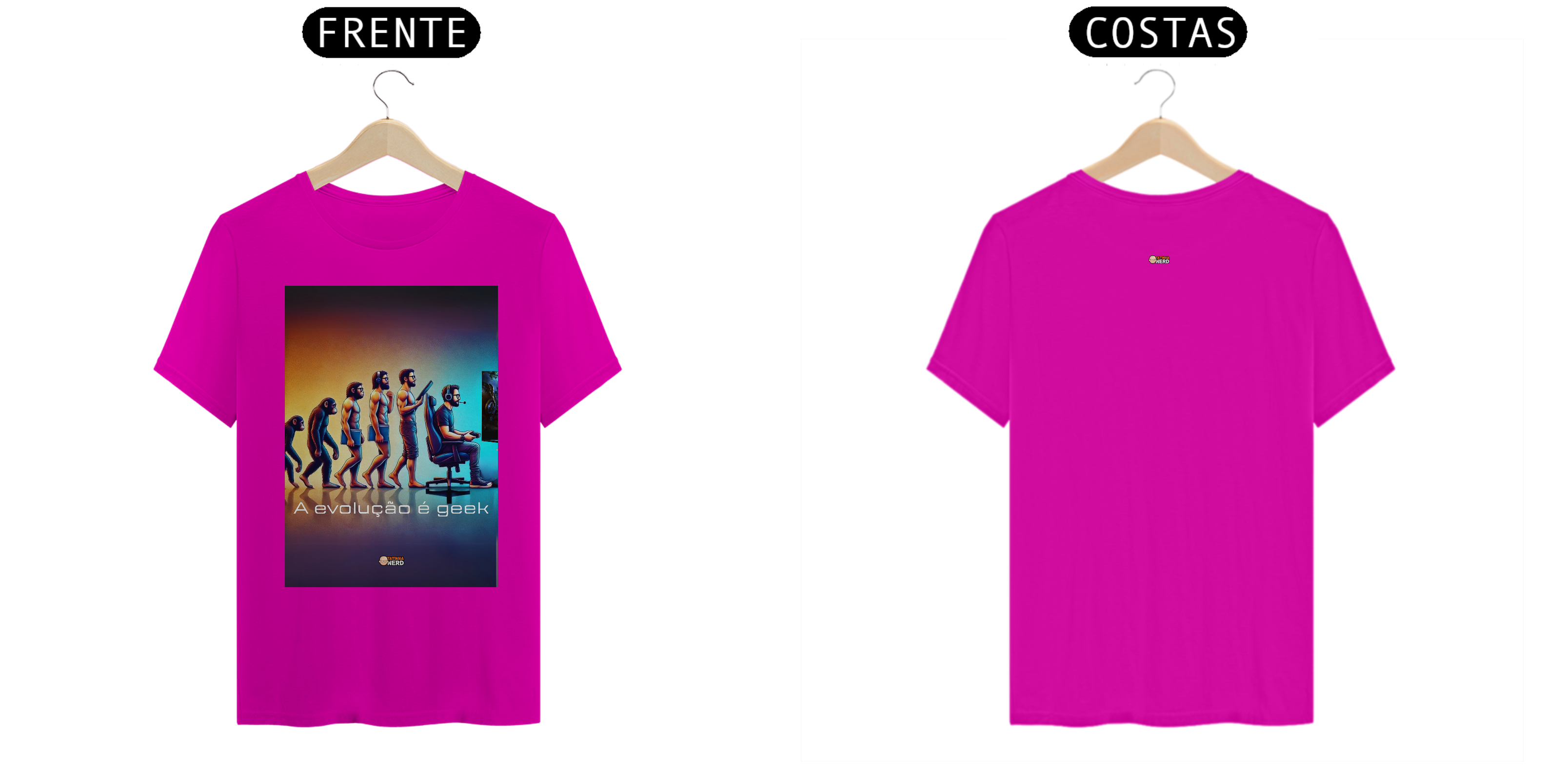 Mostre ao mundo que a verdadeira evolução é ser geek e leve essa peça exclusiva para o seu guarda-roupa. Seja para presentear alguém especial ou para completar sua coleção de moda geek, esta camiseta da Tatinha Nerd é indispensável!