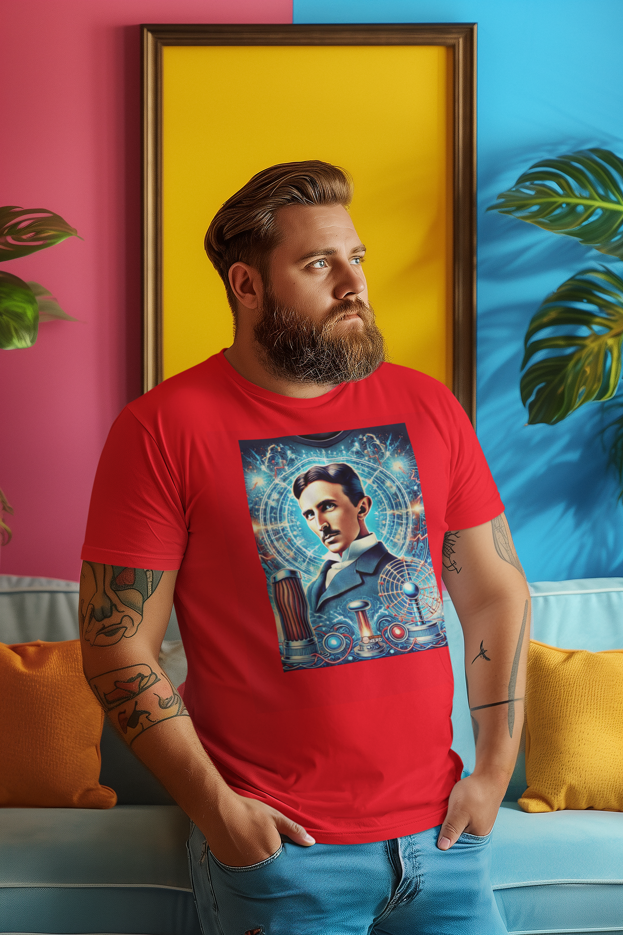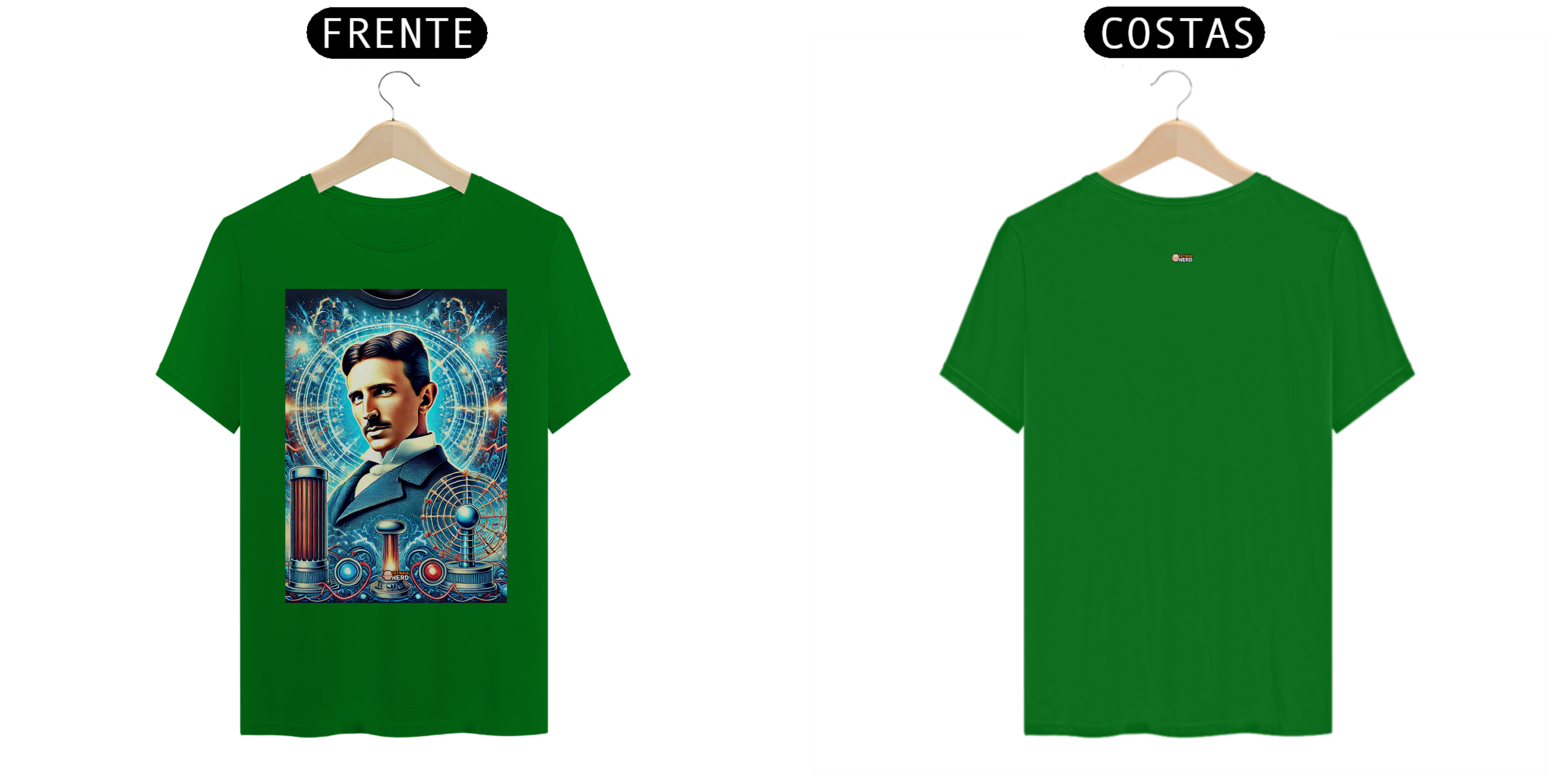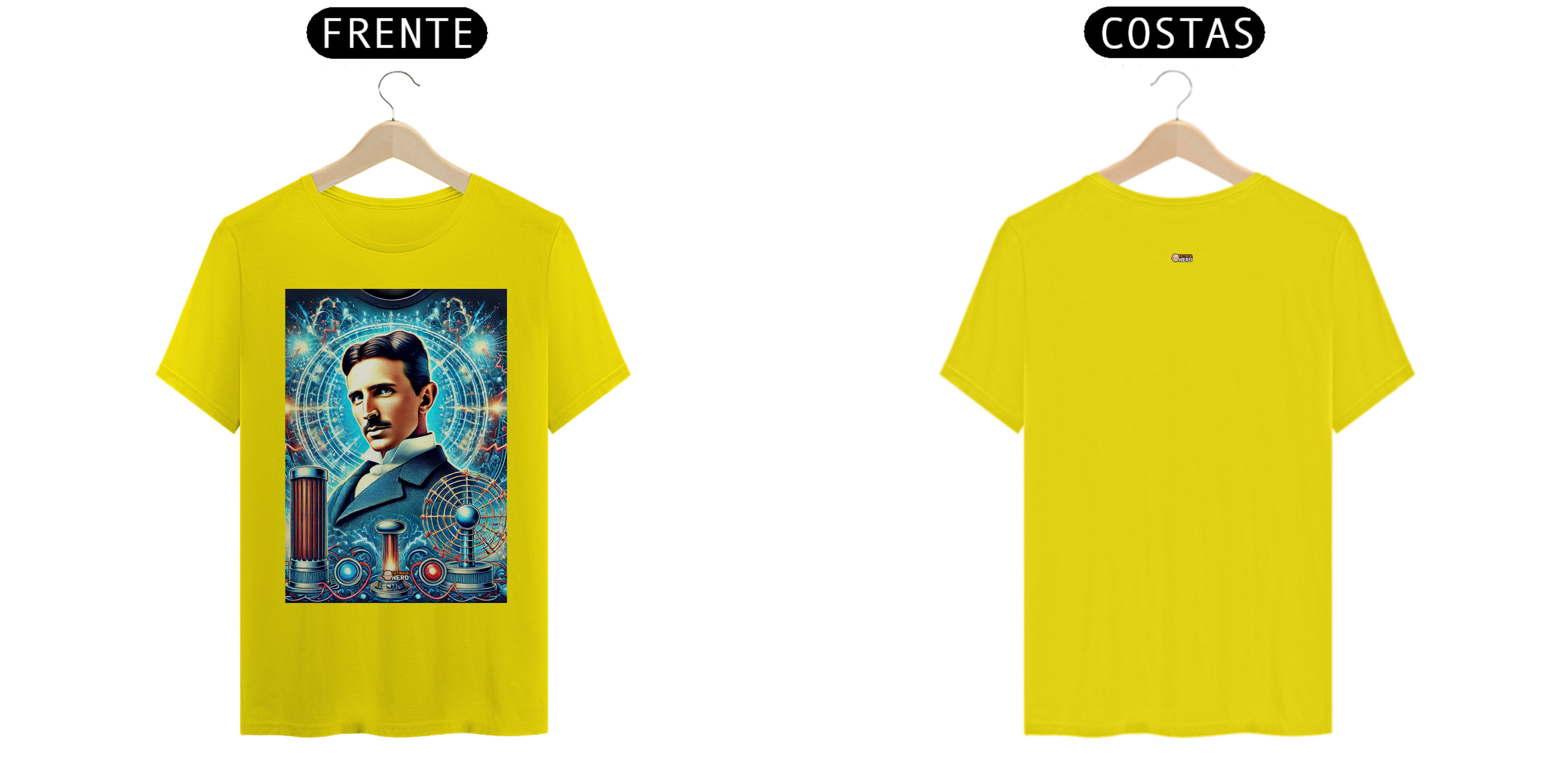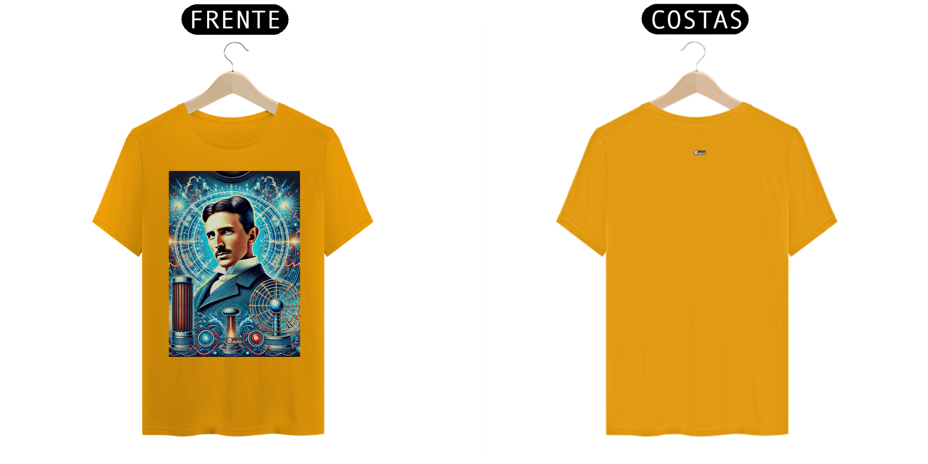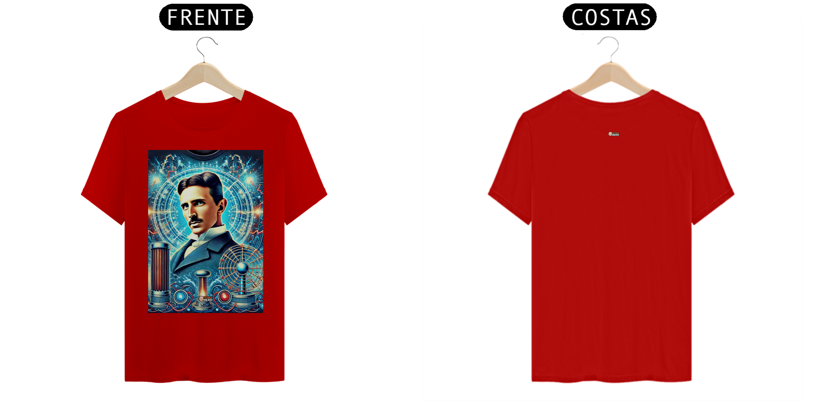 A arte dessa camiseta combina elementos tecnológicos e energia pura, com bobinas, circuitos e faíscas elétricas, capturando toda a essência inovadora de Tesla. A paleta de cores vibrantes e os detalhes de alto contraste fazem dessa peça uma verdadeira homenagem ao gênio que ajudou a moldar o mundo moderno.