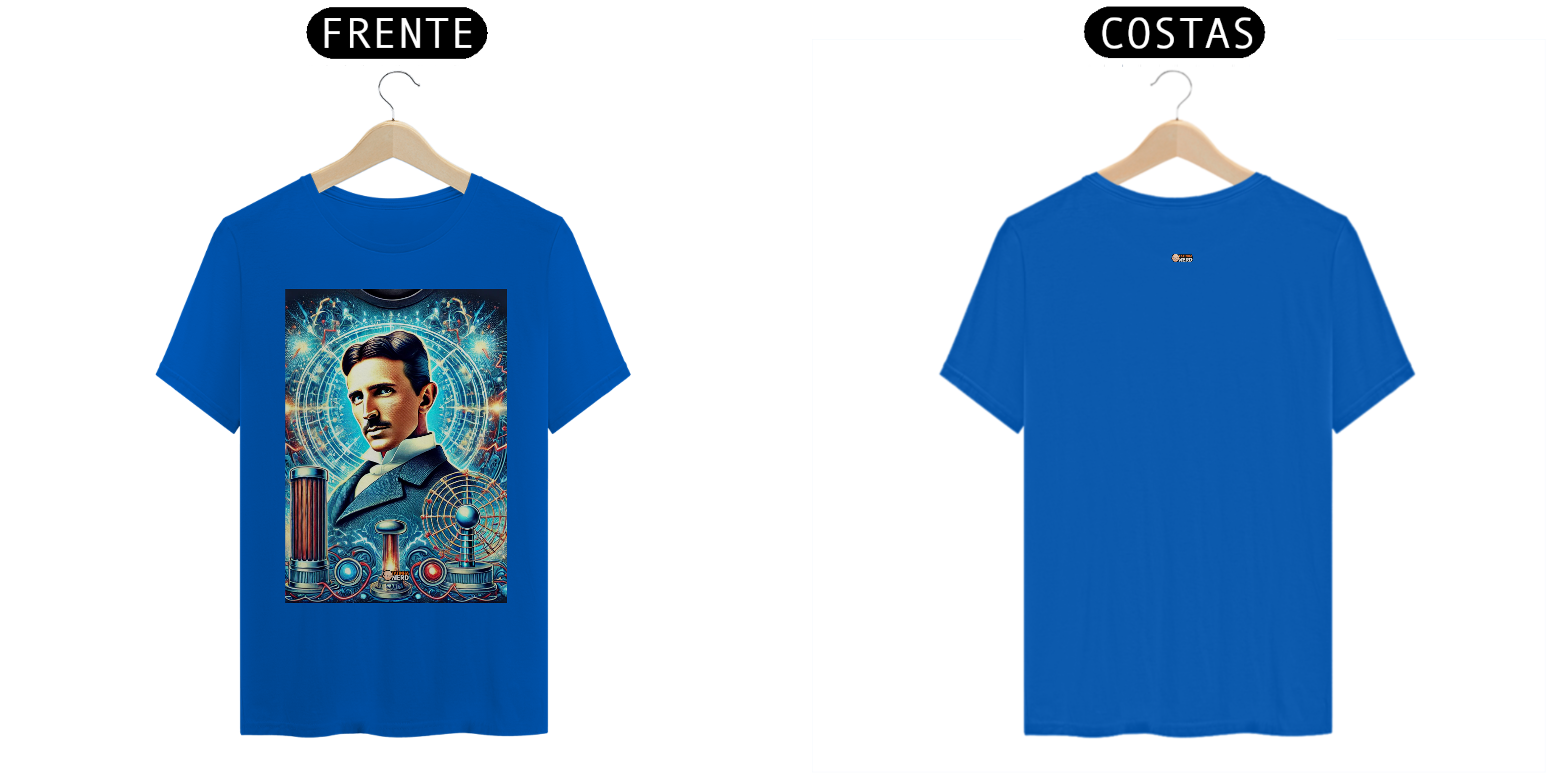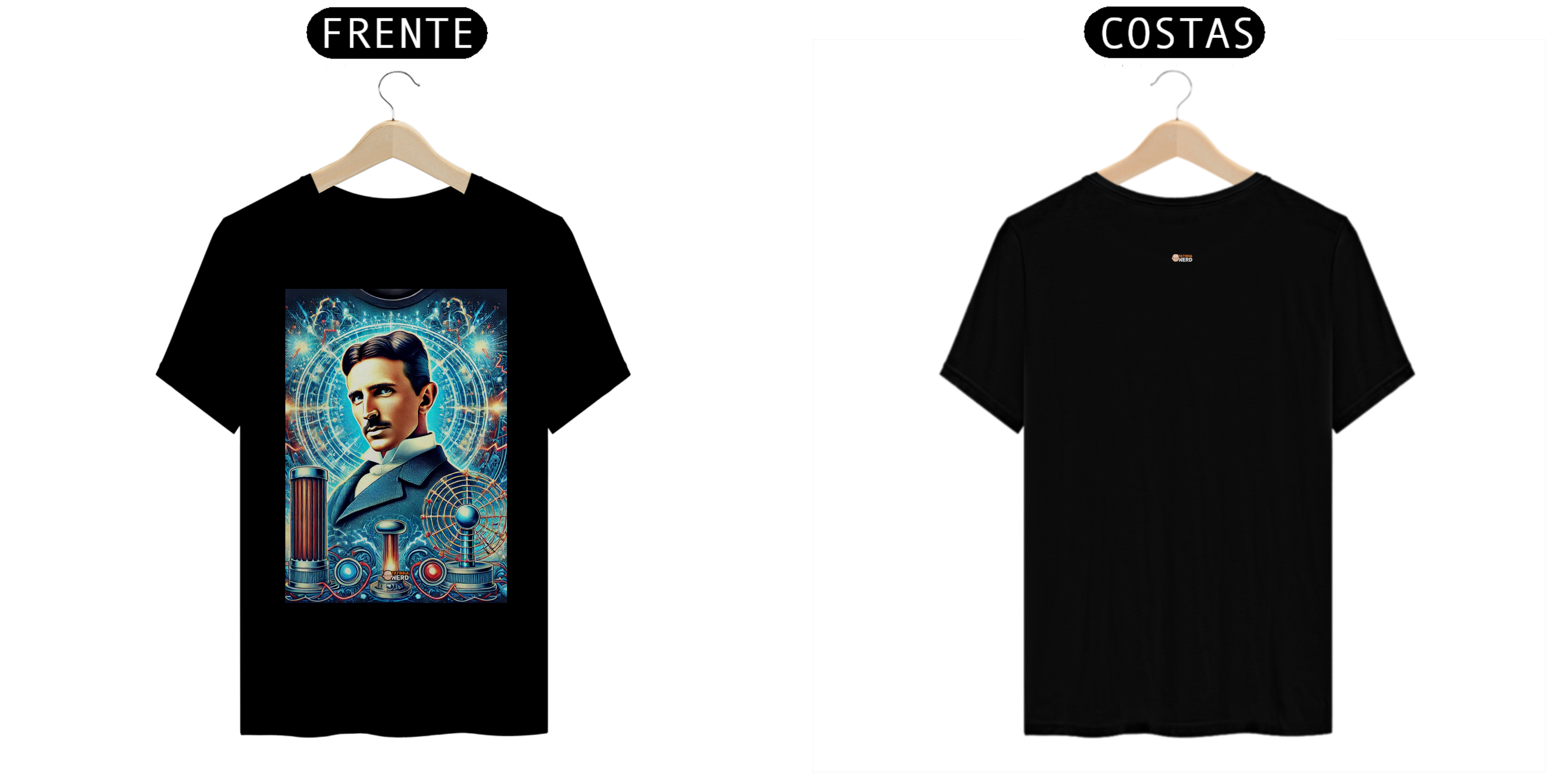 Se você admira a genialidade visionária de Nikola Tesla, essa camiseta é essencial para o seu guarda-roupa nerd! Com um design futurista e eletrizante, essa estampa traz um dos maiores inventores da história, responsável por inovações revolucionárias como a corrente alternada, a bobina de Tesla e avanços na eletricidade sem fio.