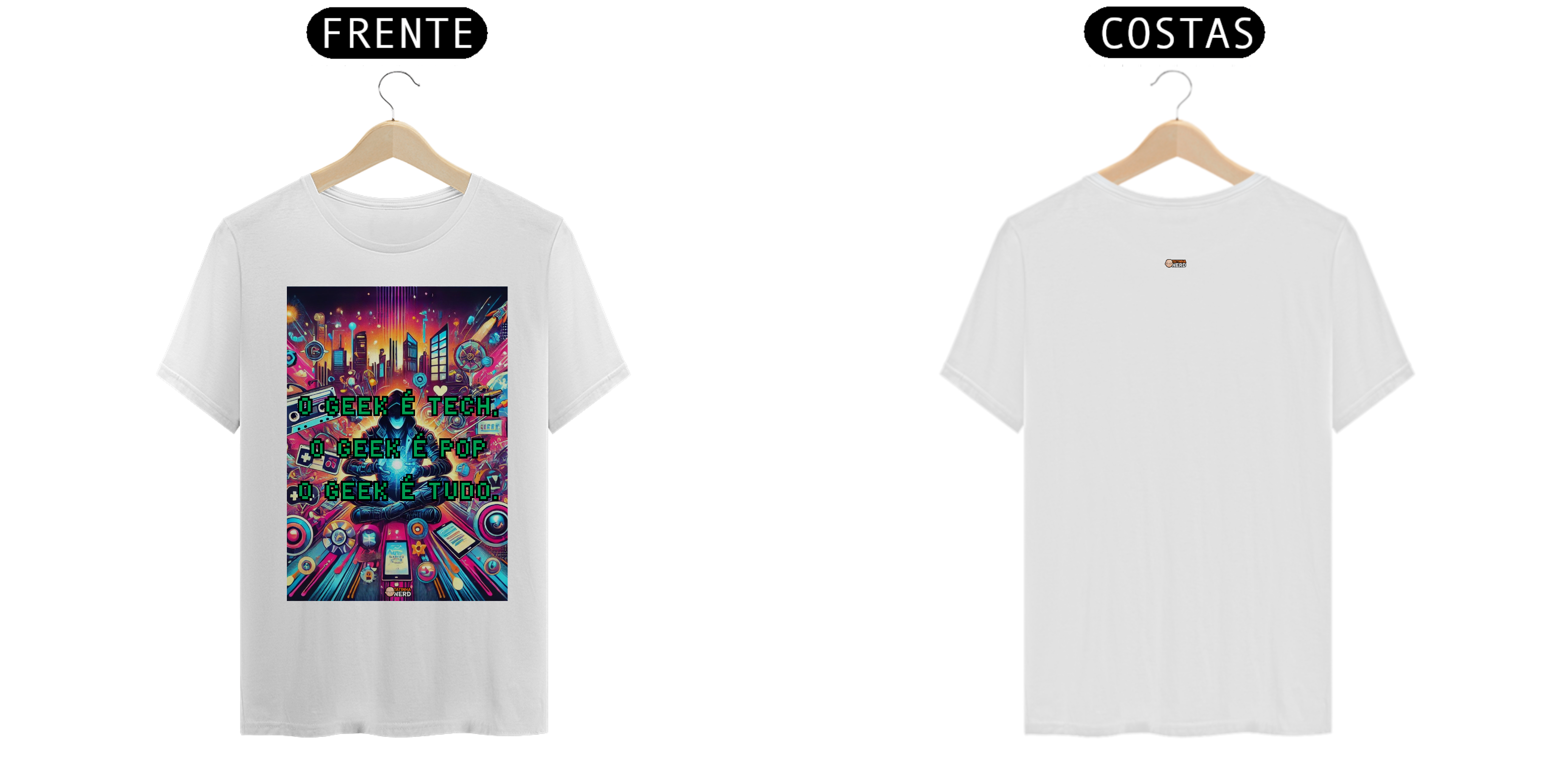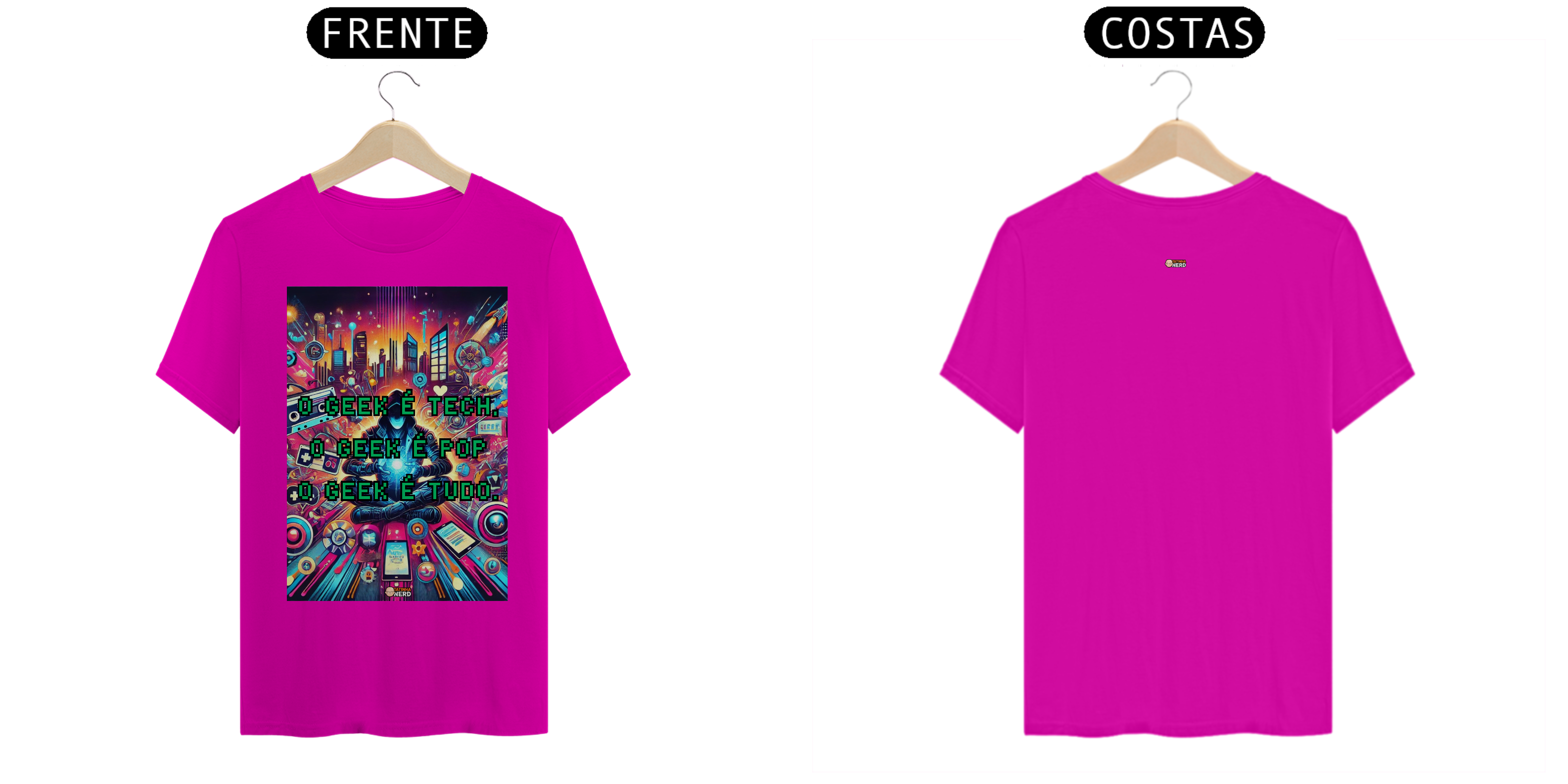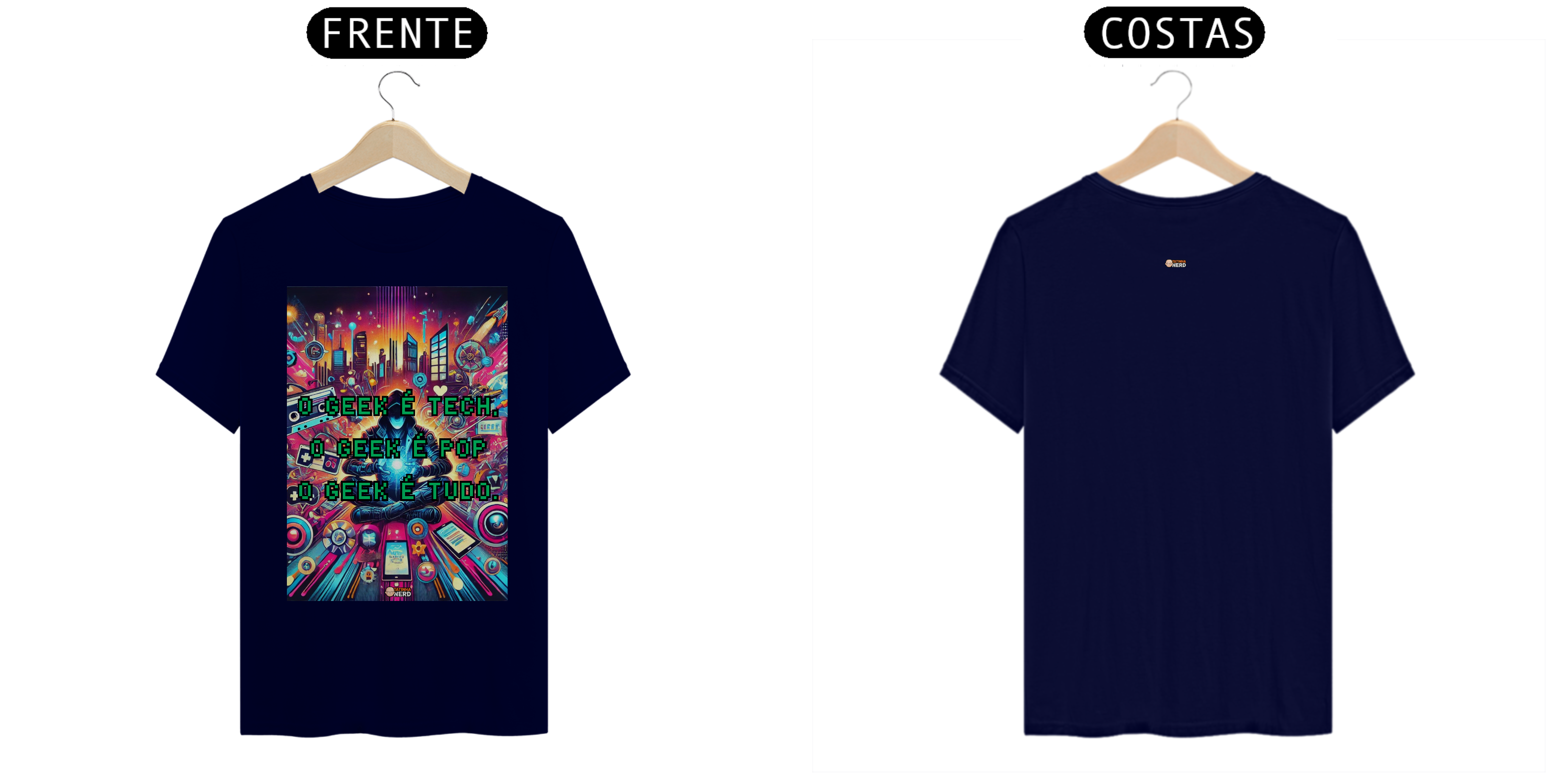 Transforme seu estilo com a camiseta exclusiva "O Geek é Tech, o Geek é Pop, o Geek é Tudo" da Tatinha Nerd! Esta peça vibrante e cheia de personalidade é um verdadeiro tributo ao universo geek. A estampa apresenta uma arte deslumbrante, repleta de referências icônicas: desde gadgets tecnológicos até fitas cassete, controle de videogames e elementos urbanos, todos envoltos em uma explosão de cores e energia.