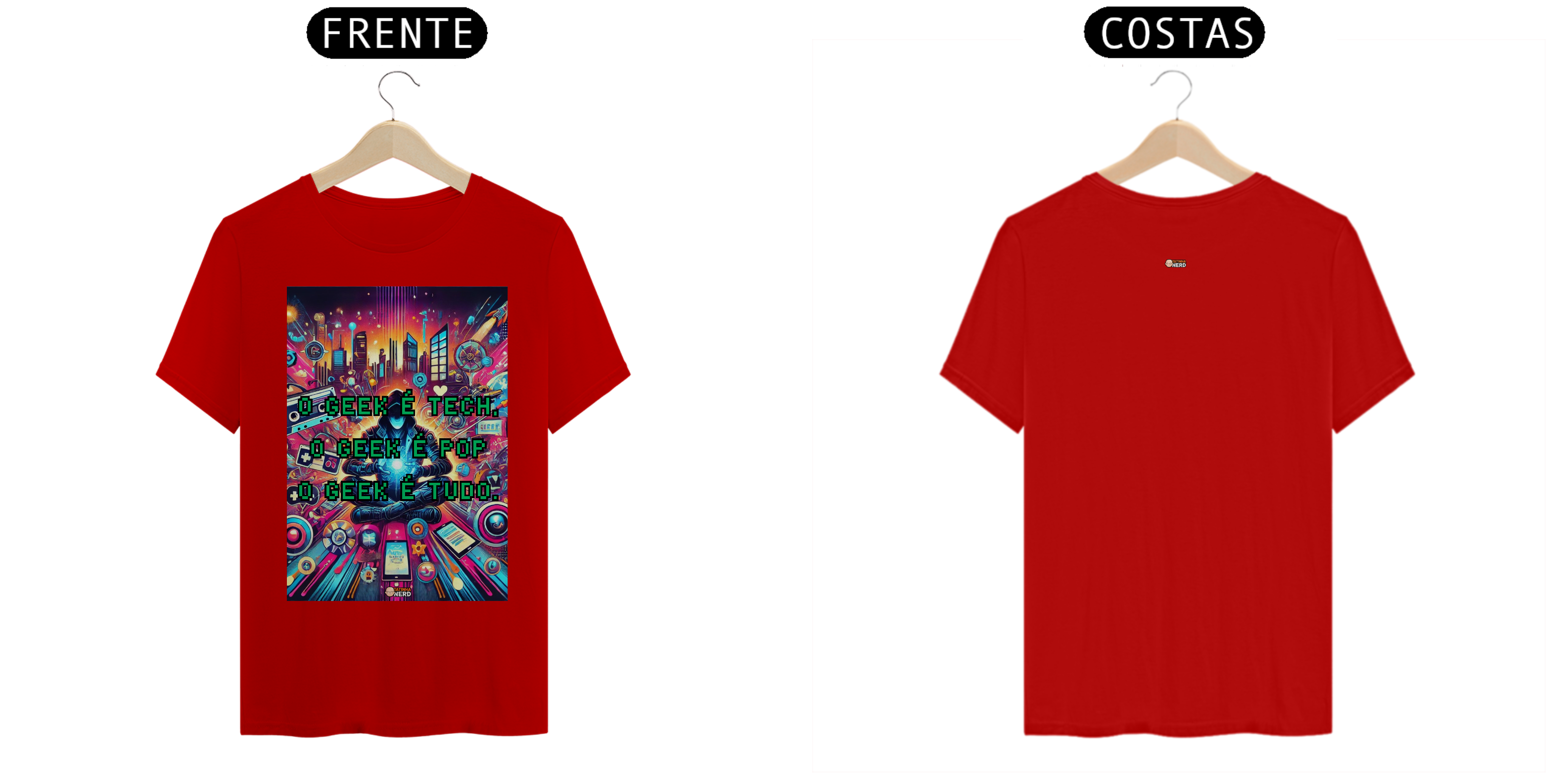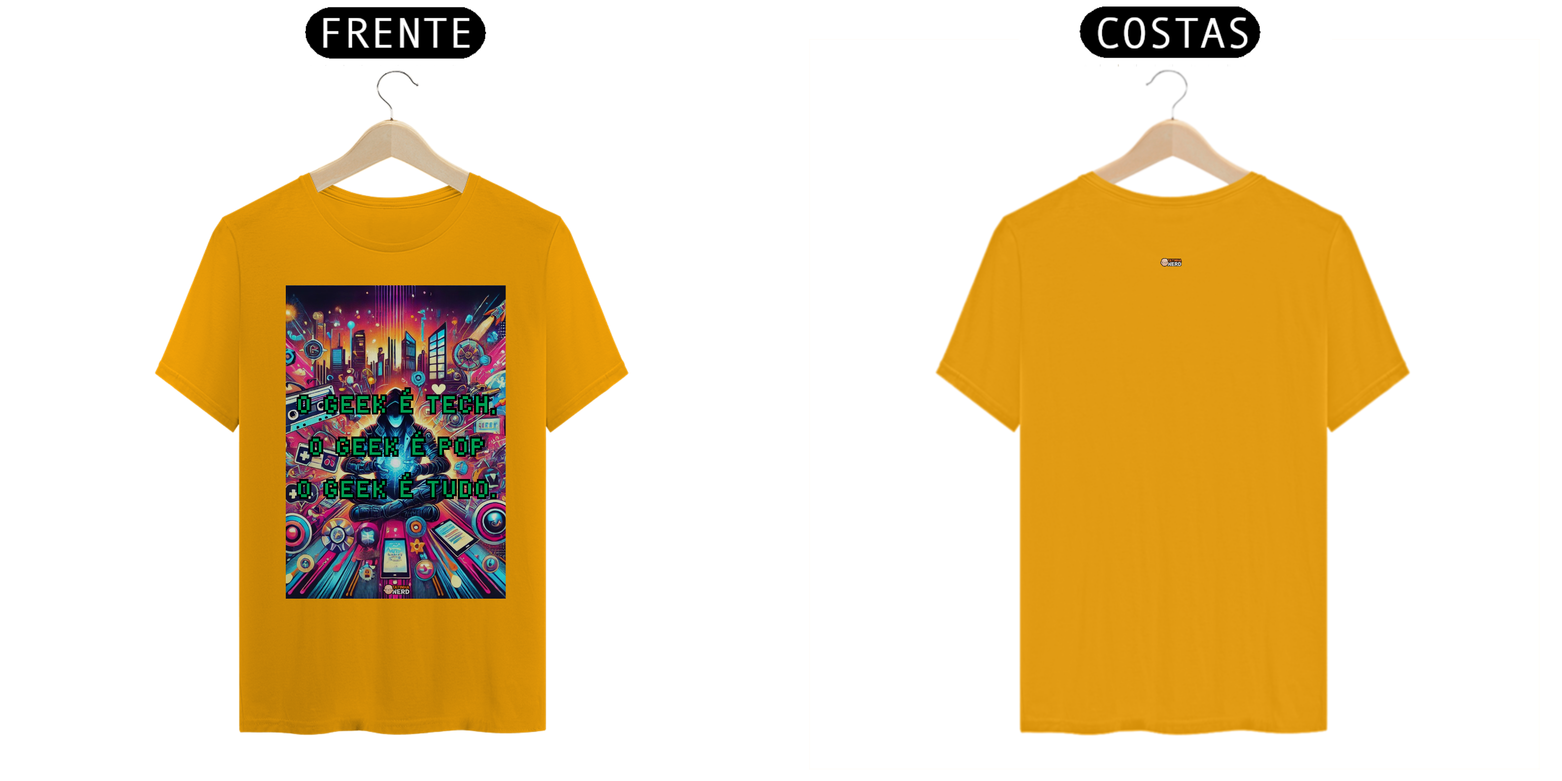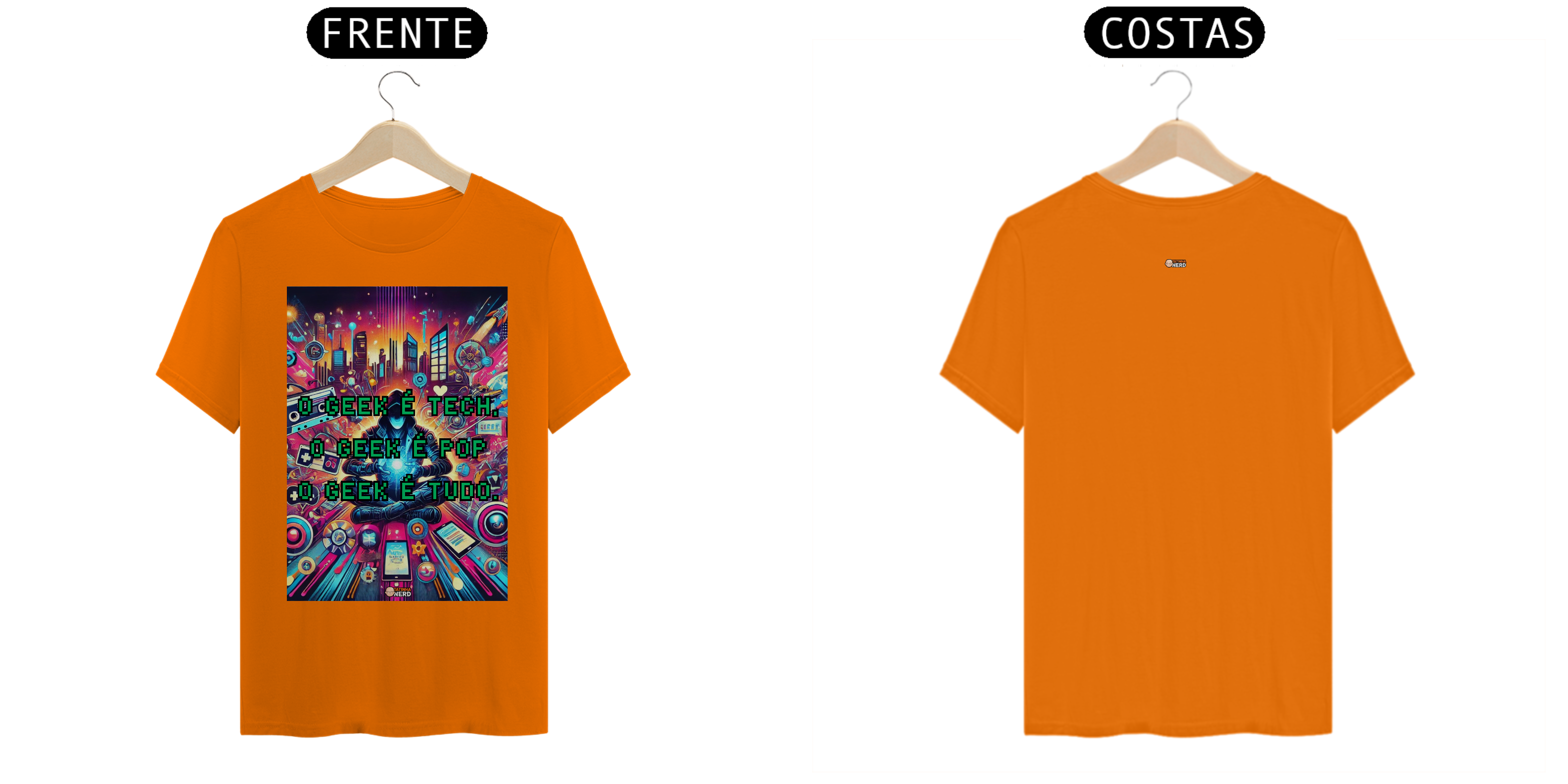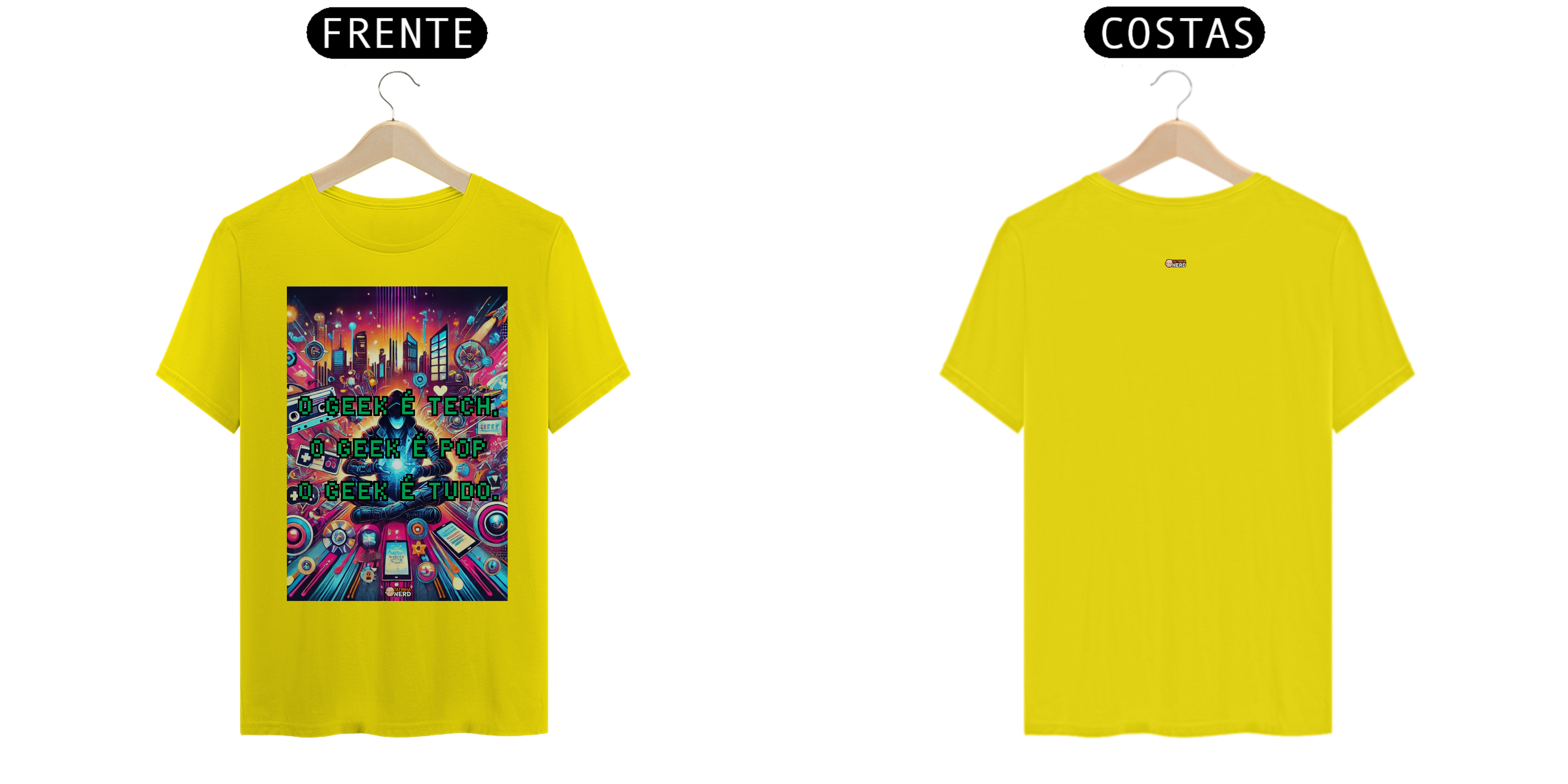 Transforme seu estilo com a camiseta exclusiva "O Geek é Tech, o Geek é Pop, o Geek é Tudo" da Tatinha Nerd! Esta peça vibrante e cheia de personalidade é um verdadeiro tributo ao universo geek. A estampa apresenta uma arte deslumbrante, repleta de referências icônicas: desde gadgets tecnológicos até fitas cassete, controle de videogames e elementos urbanos, todos envoltos em uma explosão de cores e energia.