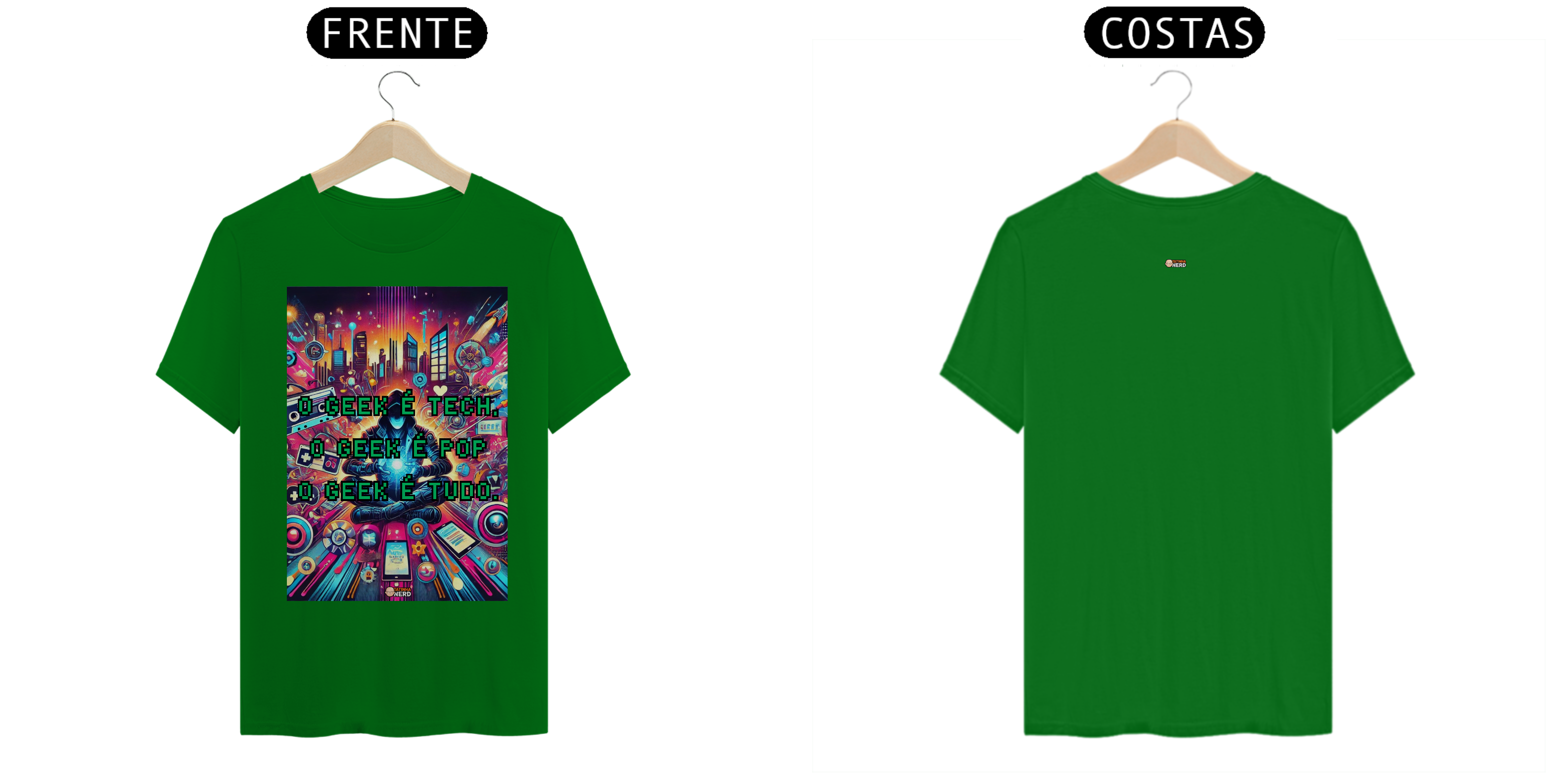 No centro, um personagem misterioso segura uma esfera de luz, simbolizando a criatividade e o impacto cultural do mundo geek. A frase "O Geek é Tech, o Geek é Pop, o Geek é Tudo" reflete a essência do estilo geek: tecnológico, culturalmente relevante e absolutamente fascinante. É perfeita para aqueles que respiram inovação, cultura pop e entretenimento.