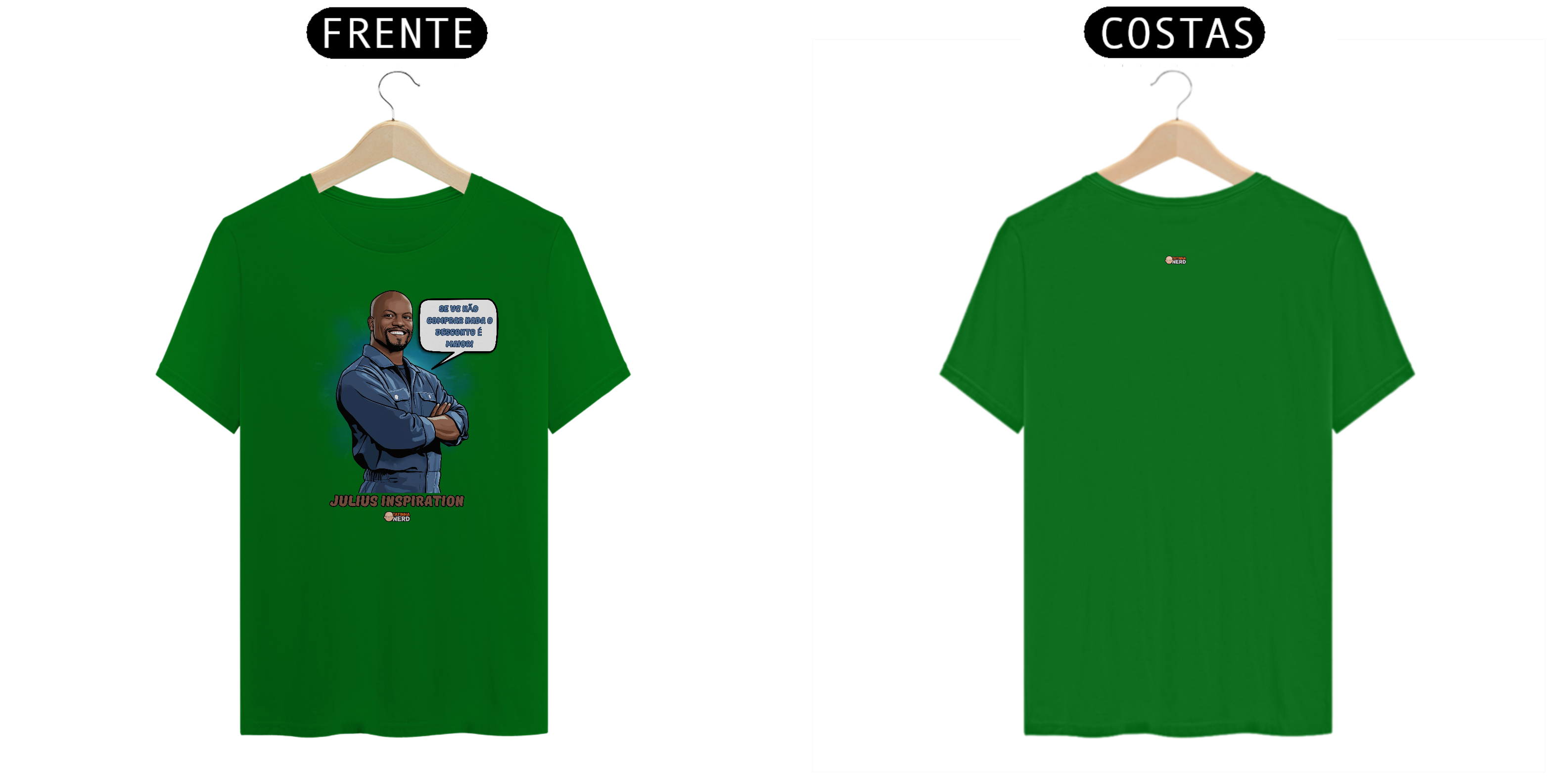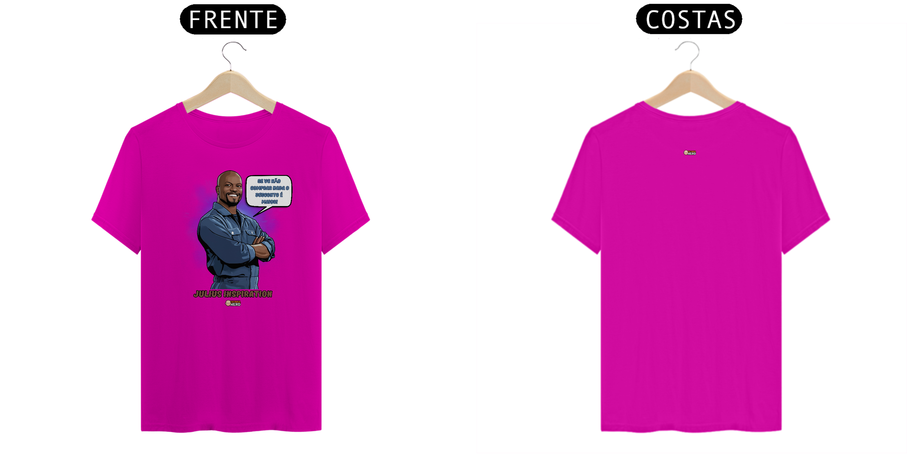 Mostre seu estilo com uma boa dose de humor e nostalgia com a camiseta exclusiva Tatinha Nerd, inspirada no inesquecível Julius, de Todo Mundo Odeia o Chris. A estampa traz o personagem em sua clássica pose confiante, acompanhado da icônica frase: "Se você não comprar nada, o desconto é maior!". Perfeita para quem sabe valorizar o verdadeiro significado de economizar e, claro, ama essa série que marcou gerações.